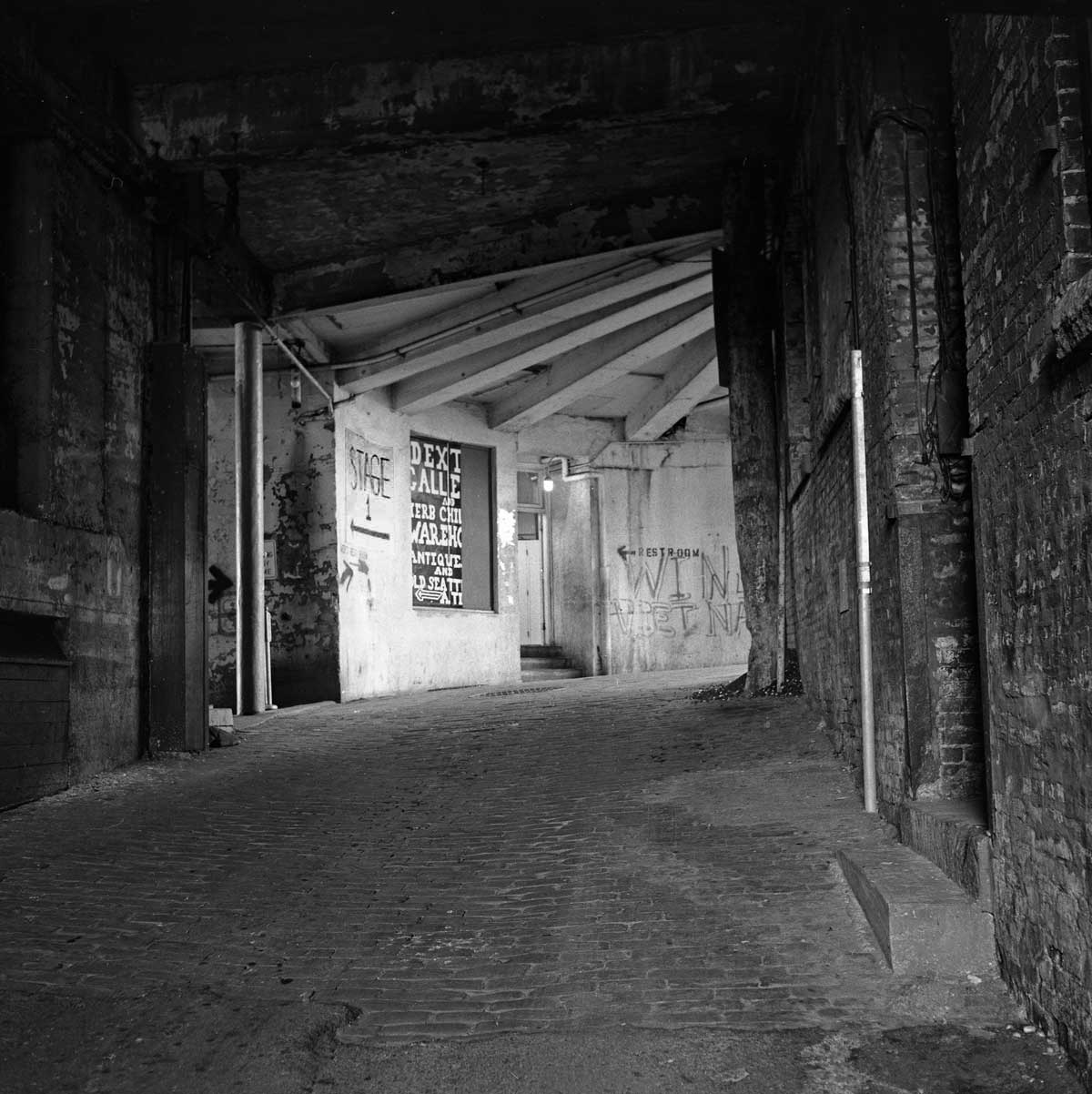 x-fs-pike-mrkt-lower-post-alley-curve-1975-web October 2, 2016 1200 × 1202 Seattle Now & Then: The Post Alley Curve The Stage One sign appears left-of-center in this Frank Shaw photo from 1975.