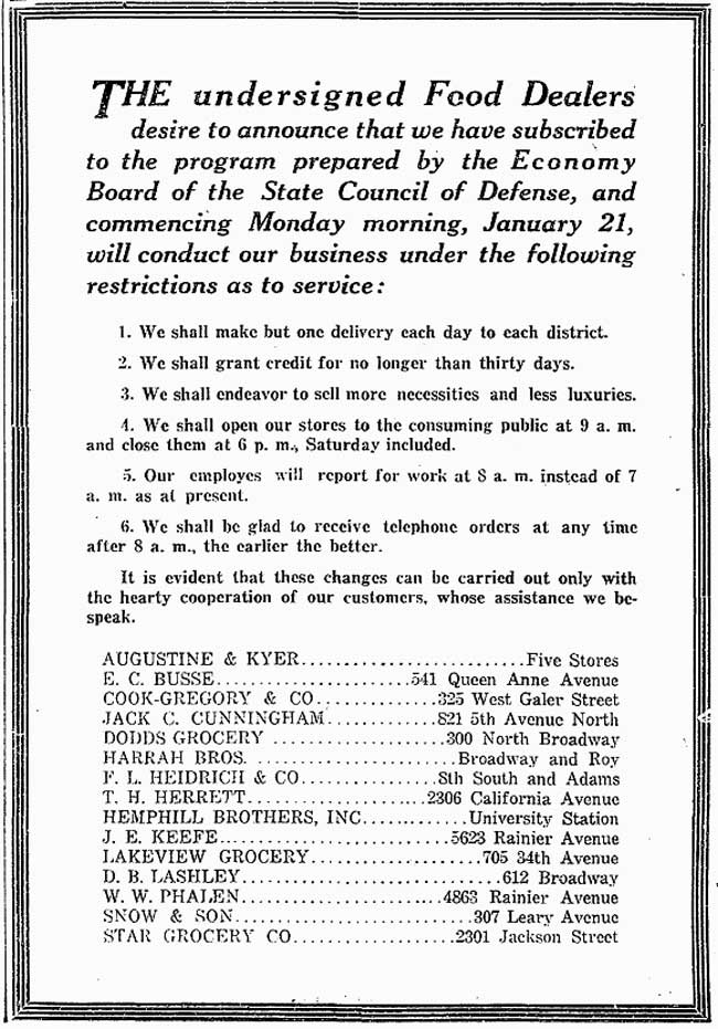 x-st-1-17-1918-wwi-restrictions-web November 6, 2016 650 × 931 Seattle Now & Then: Broadway and Roy and The Deluxe On the home front during the First World Ware, the Harrah Bros agree with fourteen other prospering “food dealers” to six restrictions.