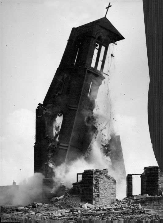 edge-1929-denny-regrade-immaculate-tower-falls-web January 29, 2017 532 × 728 Seattle Now & Then: The Last of Denny Hill, Part 1 The Immaculate Heart tower topples at the corner of Sixth Avenue and Bell Street – with the help of explosives.