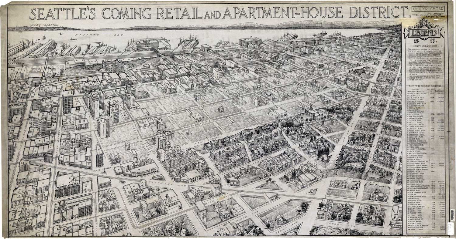 x-birds-eye-seattle-retail-apartment-house-district-1917-mrweb2 January 29, 2017 1500 × 788 Seattle Now & Then: The Last of Denny Hill, Part 1 The “Old Quarter” is easily distinguished in this ca. 1917 rendering of the then “apartment house district.” CLICK to ENLARGE