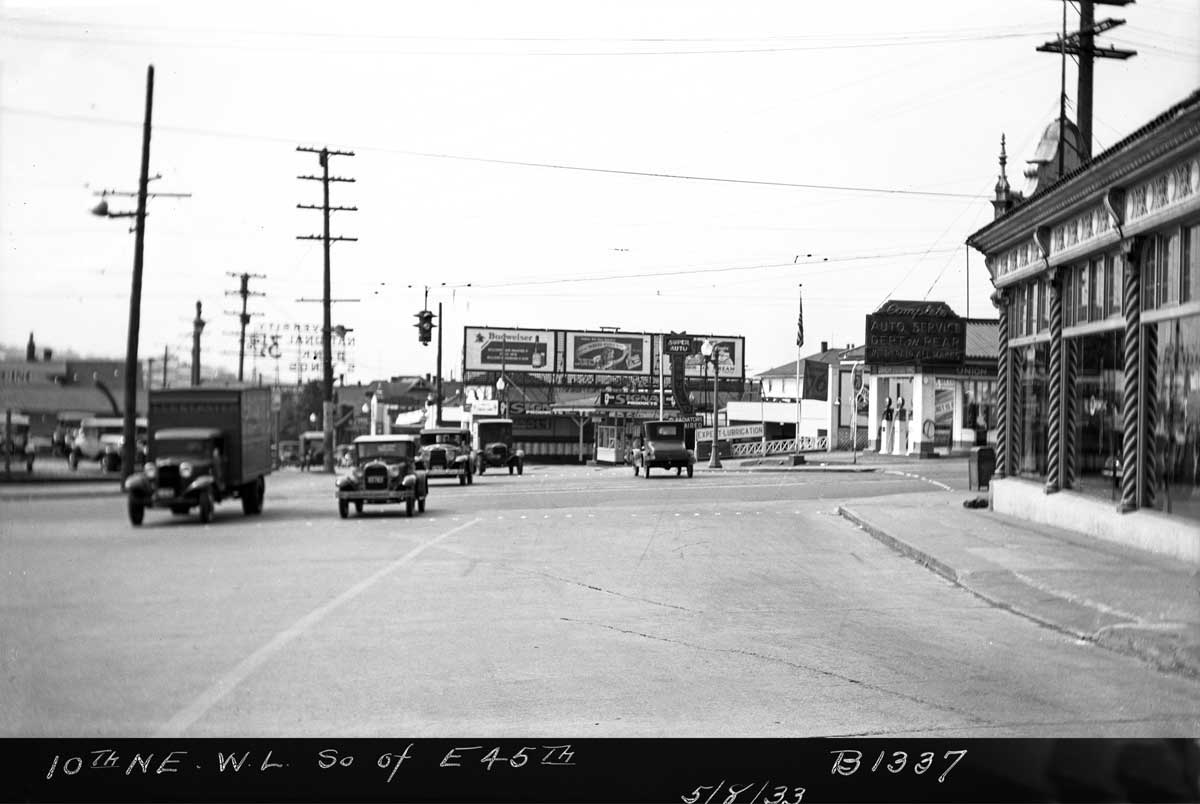 FK-Z-ROOSEVELT-WAY-lk-so-thru-45th-(10th-N.E.-w.L-WEB- April 30, 2017 1200 × 804 Seattle Now & Then: Lower Roosevelt Way, 1940 Five blocks north looking south through NE 45th on May 8, 1933.