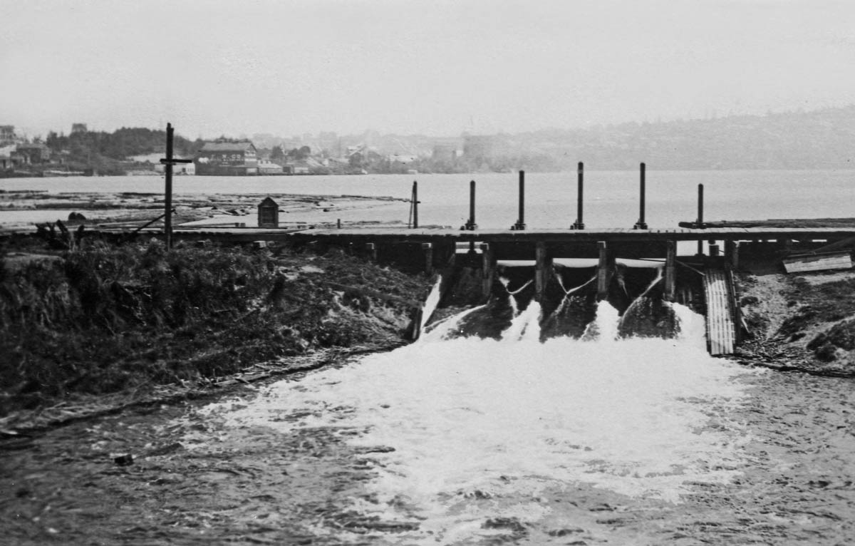 BRIDGE Fremont-Dam-1907-WEB copy May 14, 2017 1200 × 766 Seattle Now & Then: North End of Fremont Bridge The Fremont dam and pedestrian bridge seen from the Fremont Low Bridge, probably in 1907. Note the distant standpipe, top-center, of the Seattle Gas Company. It was brand new in 1907 and it now the site (of course) of Gas Works Park.