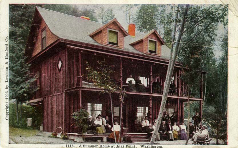 x Alki Point vertical log cabin south alki colored post card June 4, 2017 833 × 520 Seattle Now & Then: Sea View Hall