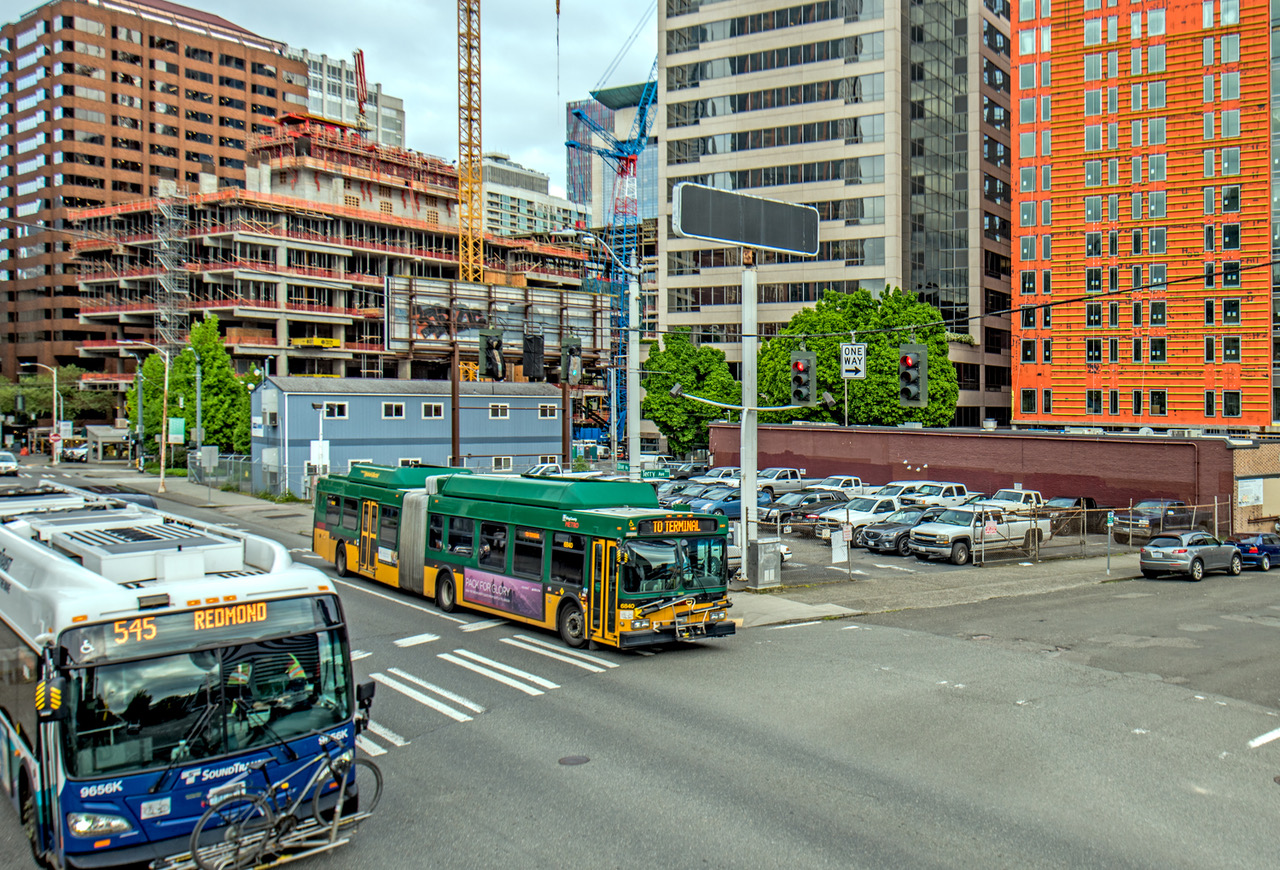 NOW: The building boom that continues to punctuated both the Denny Regrade and Denny Triangle neighborhoods with high-rises has so far missed the small flatiron shaped block on which the Church of the Covenanters in 1894 first built their sanctuary facing Olive Street.