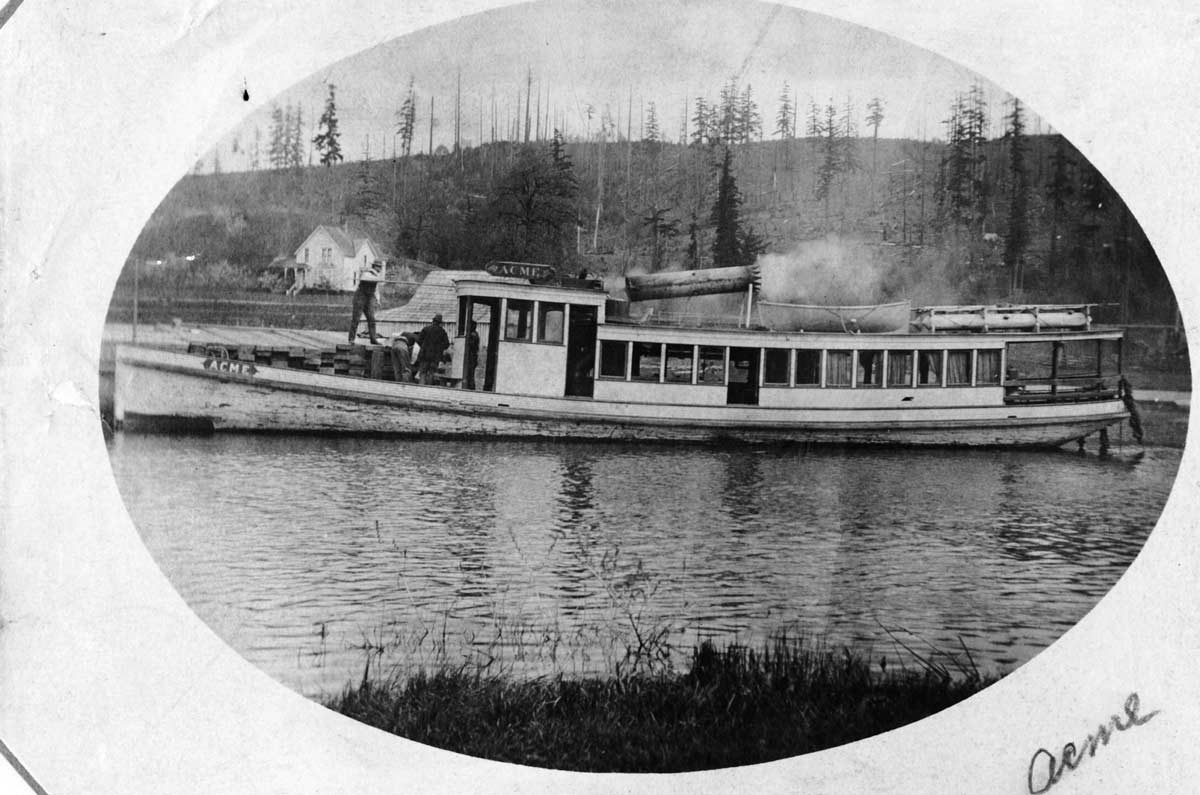 x-Acme-in-Squak-Slew-w-barn-behind.-WEB July 30, 2017 1200 × 795 Seattle Now & Then: The Blyth Barn on Squak Slough The Acme, one of the shallow steamers that moved passengers and goods on Slough. Note the familiar barn just above the two men on the steamer’s bow, and the familiar farmhouse on the left.