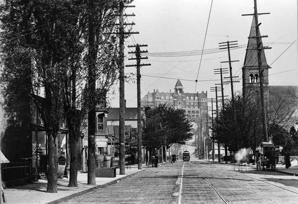 3rd-1890s-w-Denny-Hotel-Plymouth-Trees-in-bloom-WEB copy October 1, 2017 1194 × 817 Seattle Now & Then: The Denny Hotel Looking north on Third Avenue from near Spring Street with the Plymouth Congregational Church on the right and nearby at University Street. (Courtesy, Lawton Gowey)