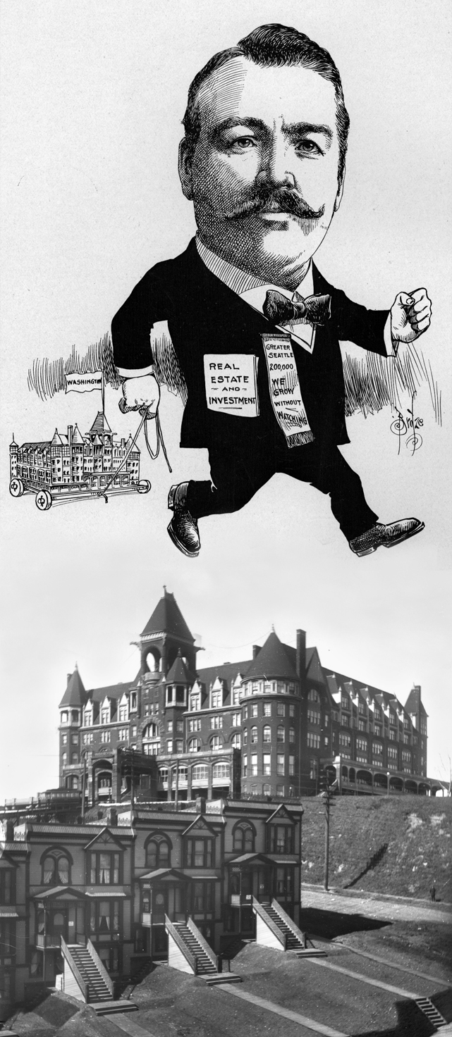 Denny Hotel over 4th Ave. c1904lowres copy October 1, 2017 641 × 1472 Seattle Now & Then: The Denny Hotel James Moore, the local developer who first opened the Denny Hotel in 1903 and renamed it the Washington Hotel.