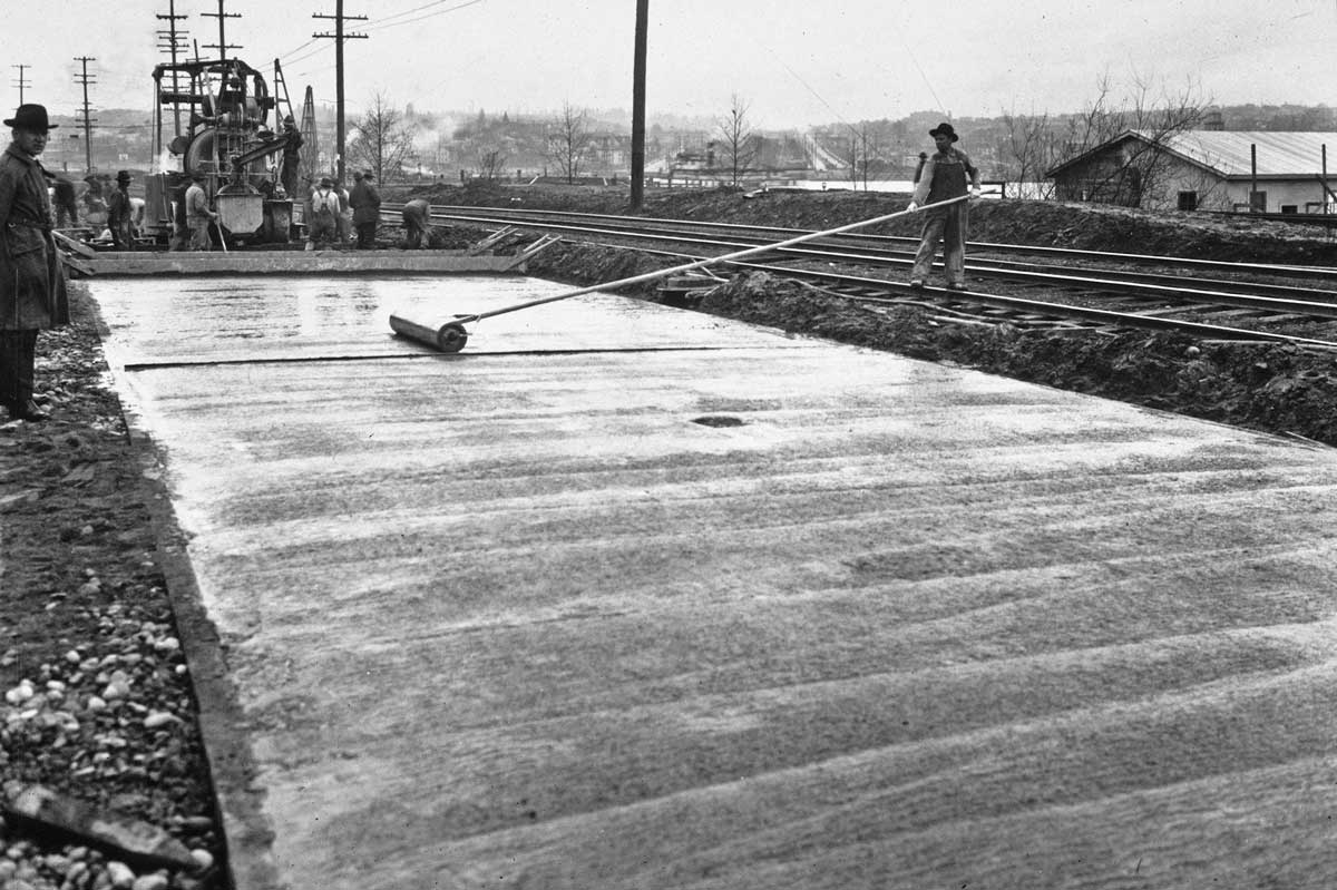 xPaving-Westlake-WEB- October 8, 2017 1200 × 799 Seattle Now & Then: Lake Union Logs Paving Westalke on landfill regraded along the base of Queen Anne Hill.