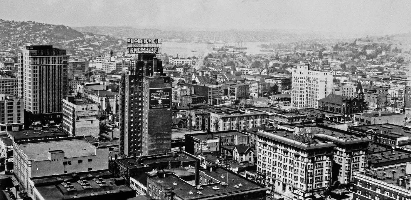 x aerial1930’S web October 15, 2017 1400 × 680 Seattle Now & Then: The Camlin Hotel A 1930 panorama featuring a few of the Camlin’s hostelry neighbors. The Camlin here shines bright (its painted back side) right of center and behind the dark brick of Swedish Baptist Church at the northwest corner of 9th Avenue and Pine Street.