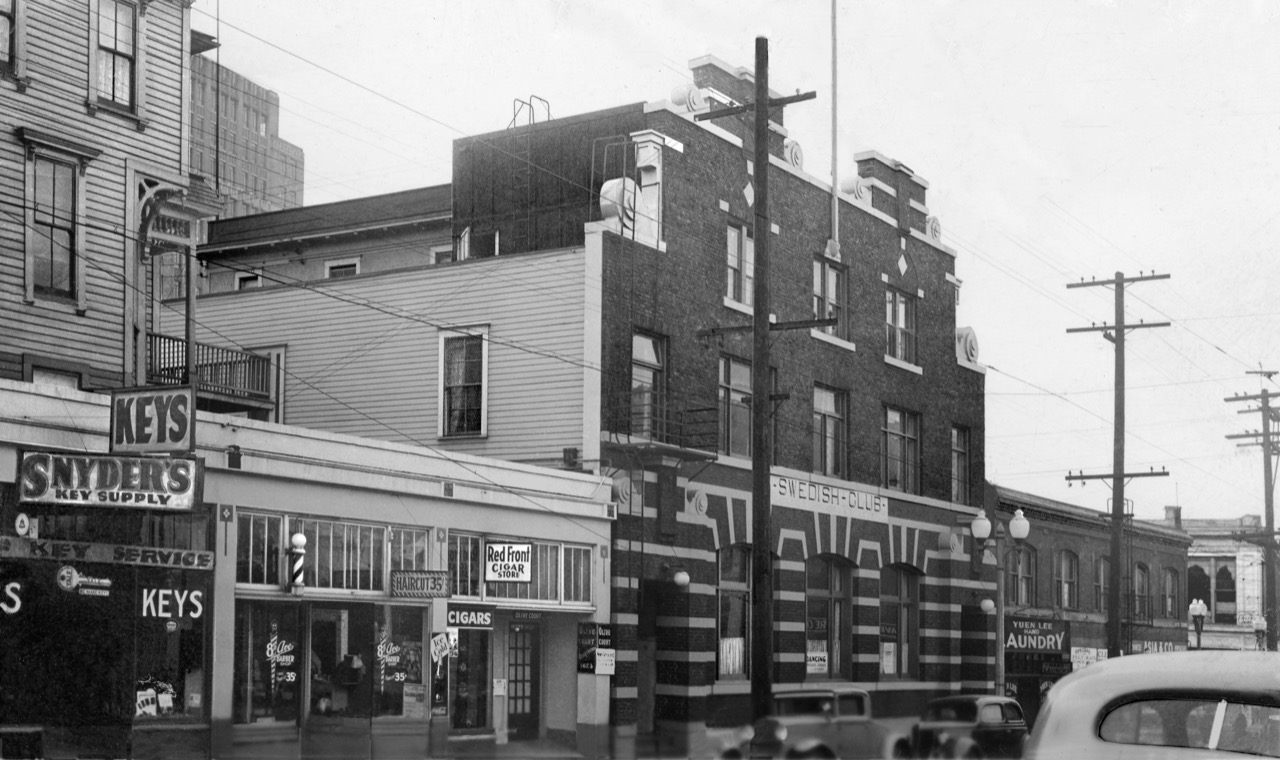 THEN: The first “permanent home for the Swedish Club at 1627 Eighth Avenue North – between Pine and Olive Streets – was built in 1901-2. After a half-century in Seattle’s greater-retail neighborhood, the Club moved to its abiding home on Dexter Avenue overlooking Lake Union from Queen Anne Hill. (Courtesy, Stan Unger)
