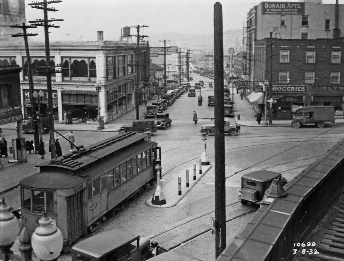 x. 8th-and-OliveHowell-WEB November 19, 2017 1200 × 913 Seattle Now & Then: The Swedish Club Looking north on Eighth Avenue through its intersection with Olive Way. A municipal photographer standing on a roof directly across 8th Avenue from the Club recorded this in 1932 for some official reason.