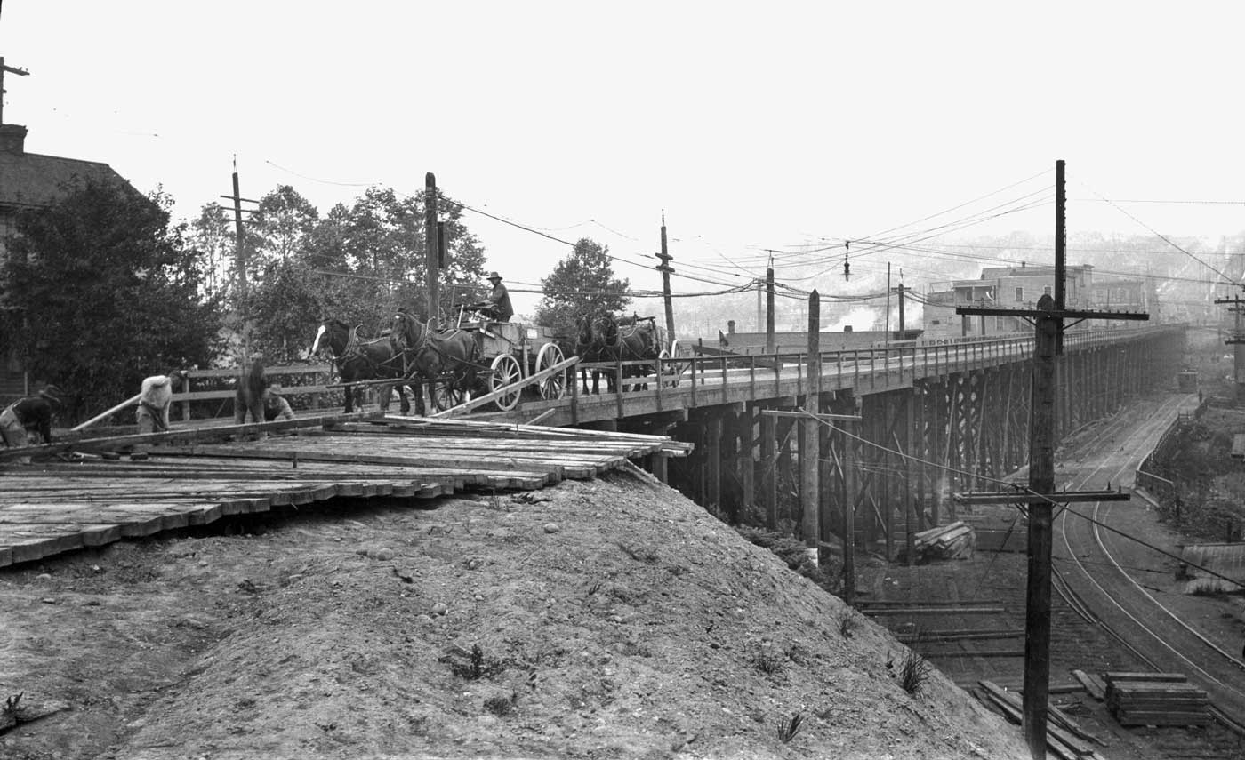 x hi-Briddge 1911 Fremont-HIGH-BRIDGE-6-21-11-then-web December 10, 2017 1400 × 855 Seattle Now & Then: Grading Fremont Looking north into Fremont from the Queen Anne side along the line of the new but still temporary timber bridge on Fremont Avenue.
