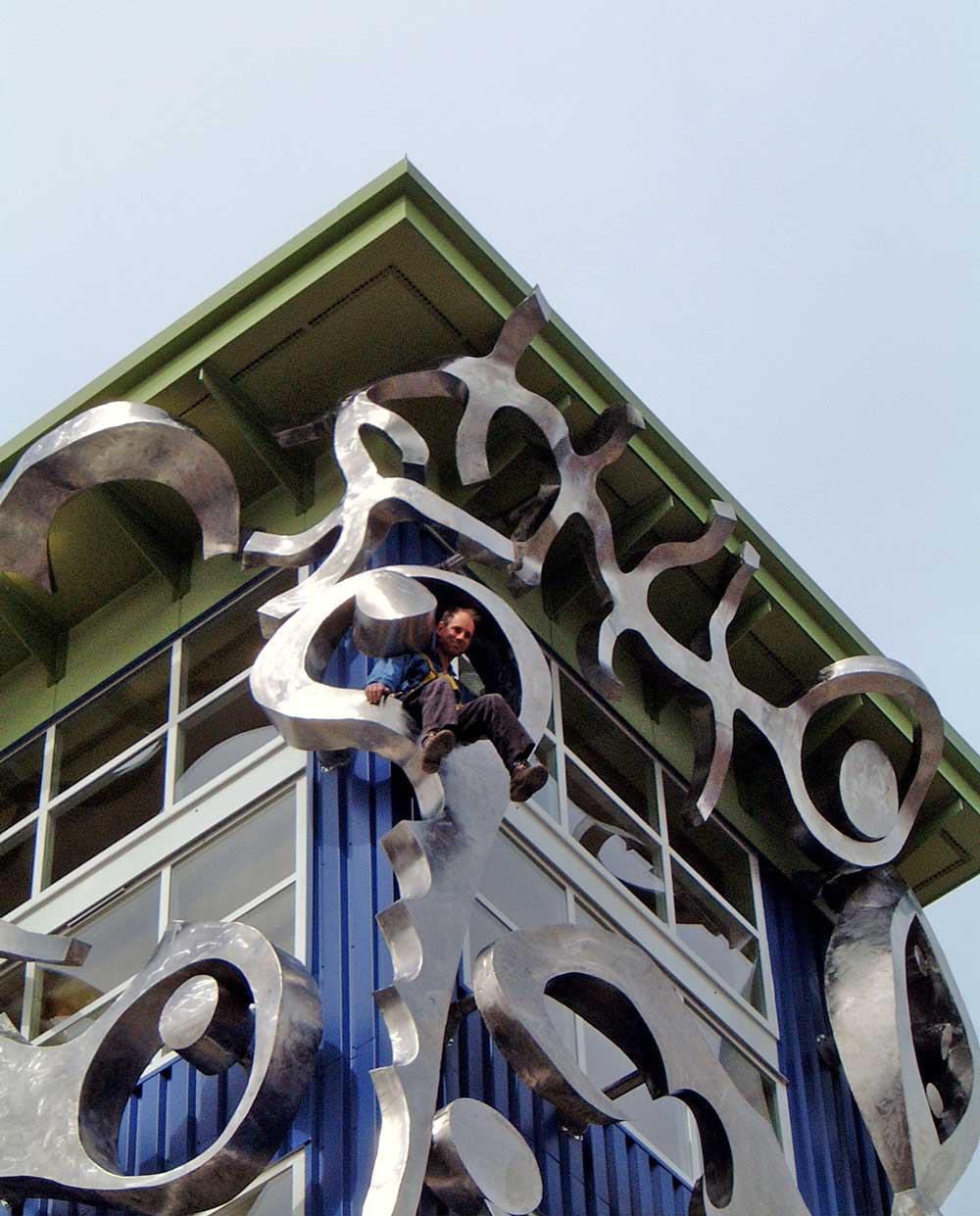 x-Stevens-on-is-sculptue-Femont-WEB December 10, 2017 1000 × 1241 Seattle Now & Then: Grading Fremont Artist Marc Stevens perched high on his sculpture Jewels of Heaven.
