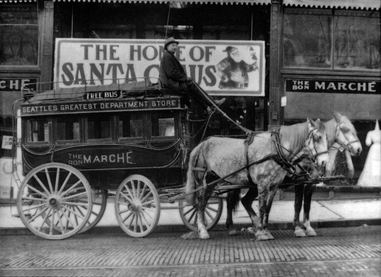 BonSanta Home December 24, 2021 1280 × 933 Season’s greetings 2021 from Santa Paul and other holiday musings Santa Claus at the Bon Marche, downtown Seattle. (Paul Dorpat collection)