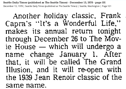 1978 12-13 STimes p101 April 5, 2023 532 × 374 Seattle Now & Then: the Grand Illusion Cinema, 1937 Dec. 13, 1978, Seattle Times, p101.