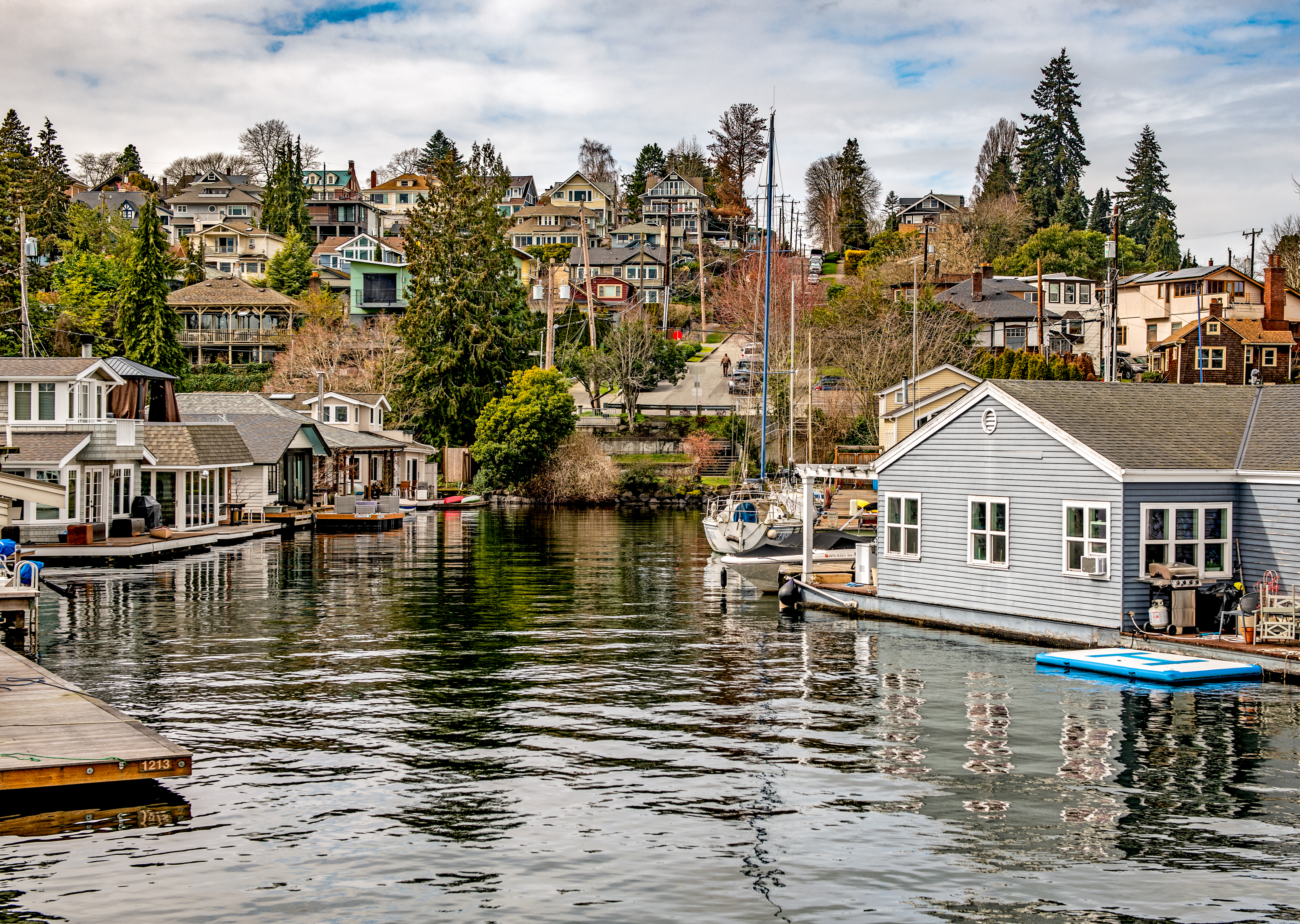 NOW2: The view from Portage Bay looking west up Shelby Street. Cheshiahud’s five acres extended along the waterfront to encompass much of the current neighborhood. Nearby, the city’s Cheshiahud Loop, a paved path circumnavigating Lake Union and dedicated by then-Mayor Greg Nickels on Dec. 3, 2008, is the home of an annual 10K race.