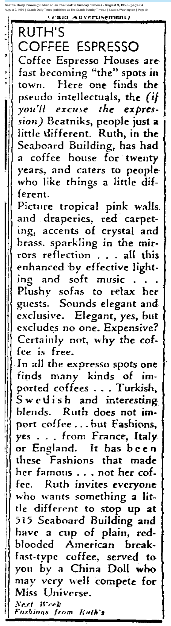 1959 08-09 STimes p84 April 18, 2023 558 × 2040 Seattle Now & Then: The Door coffeehouse, 1959 Aug. 9, 1959, Seattle Times, p84.