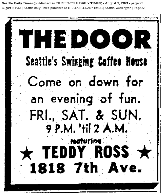 1963 08-09 STimes p22 April 18, 2023 537 × 641 Seattle Now & Then: The Door coffeehouse, 1959 Aug. 9, 1963, Seattle Times, p22.