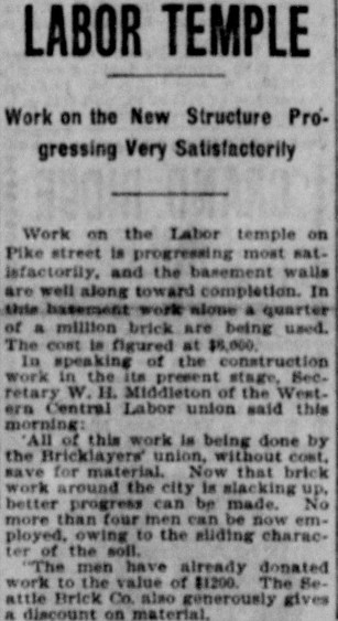 1901 11-18 SStar May 16, 2023 307 × 563 Seattle Now & Then: Seattle Labor Temple, 1955 Nov. 18, 1901, Seattle Star.
