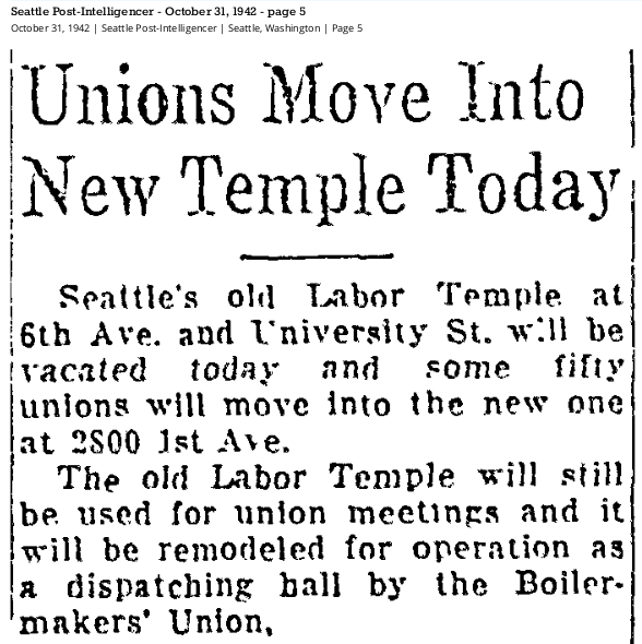 1942 10-31 SPI p5 May 16, 2023 588 × 590 Seattle Now & Then: Seattle Labor Temple, 1955 Oct. 31, Seattle Post-Intelligencer, p5.