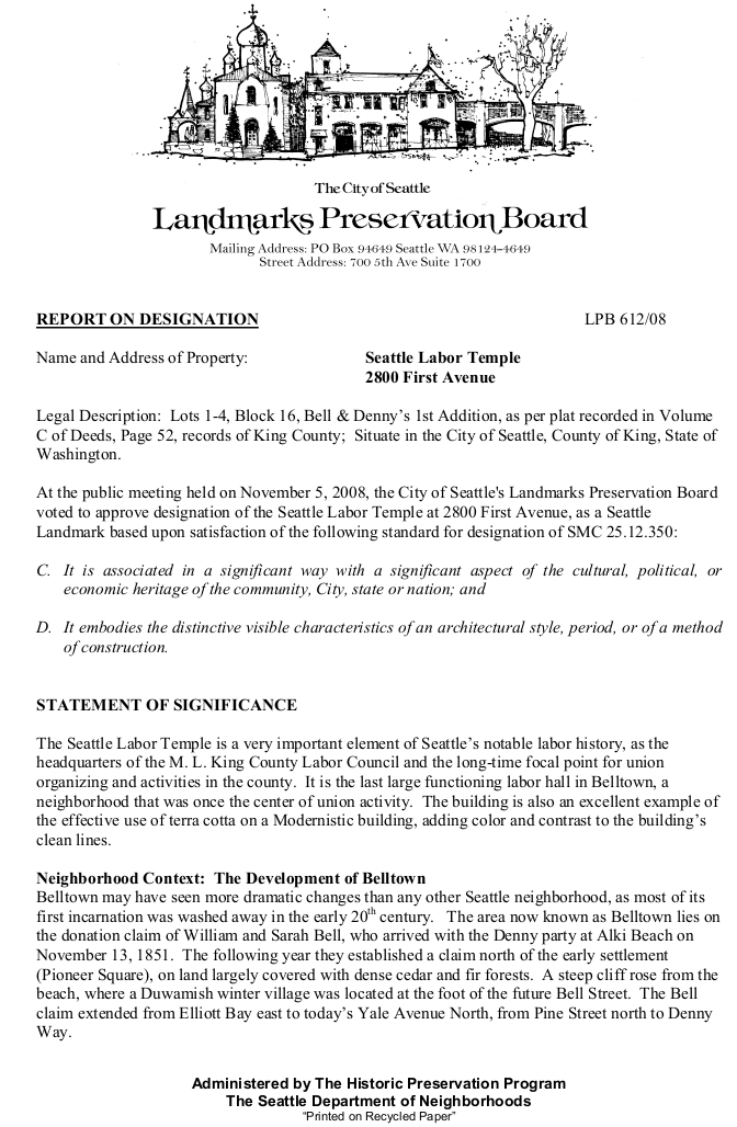 2008 11-17 Labor Temple designation cover May 16, 2023 672 × 1028 Seattle Now & Then: Seattle Labor Temple, 1955 Click the above image to download a pdf of the Nov. 17, 2008, Seattle Landmarks Preservation Board designation of the Seattle Labor Temple building.