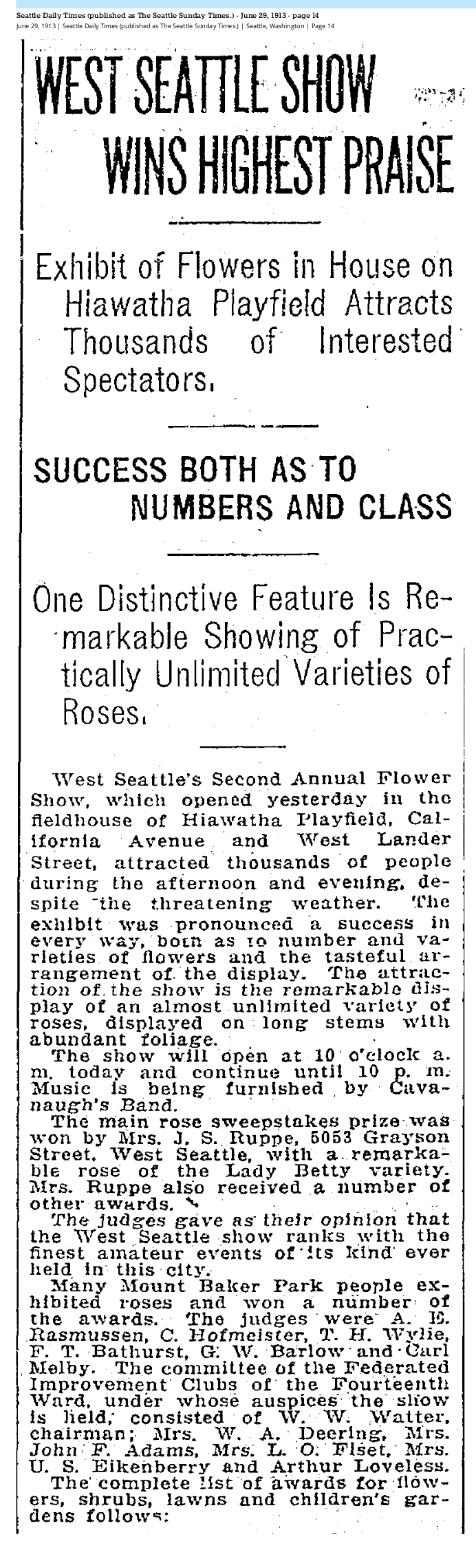 1913 06-29 STimes p14 May 31, 2023 692 × 2240 Seattle Now & Then: Hiawatha Playfield, 1911 June 29, 1913, Seattle Times, p14.