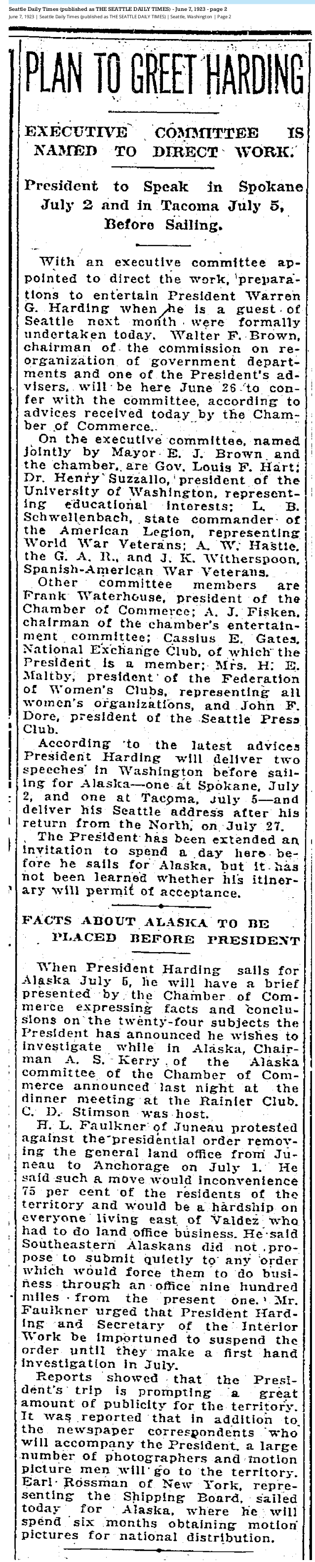 1923 06-07 STimes p2 July 12, 2023 638 × 3163 Seattle Now & Then: Harding, big crowds at Woodland Park & UW, 1923 June 7, 1923, Seattle Times, p2.