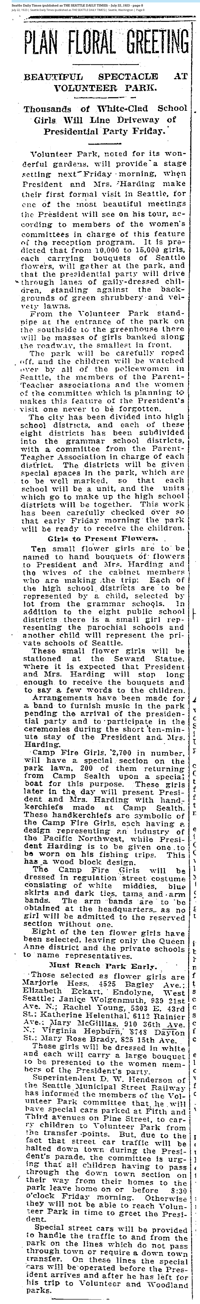 1923 07-22 STimes p8 July 12, 2023 680 × 4416 Seattle Now & Then: Harding, big crowds at Woodland Park & UW, 1923 July 22, 1923, Seattle Times p8.