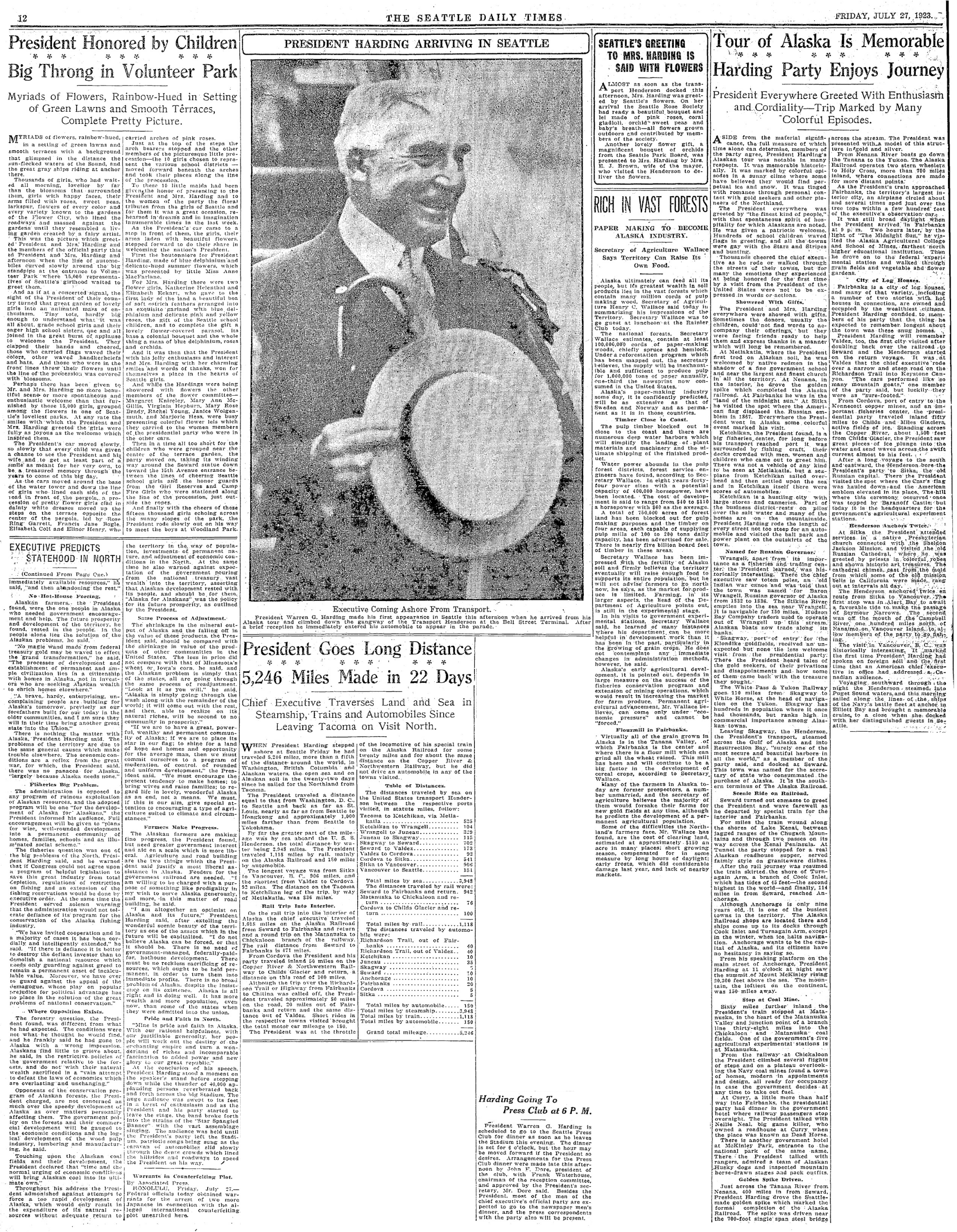 1923 07-27 STimes p12 July 12, 2023 2116 × 2724 Seattle Now & Then: Harding, big crowds at Woodland Park & UW, 1923 July 27m 1923, Seattle Times, p12.