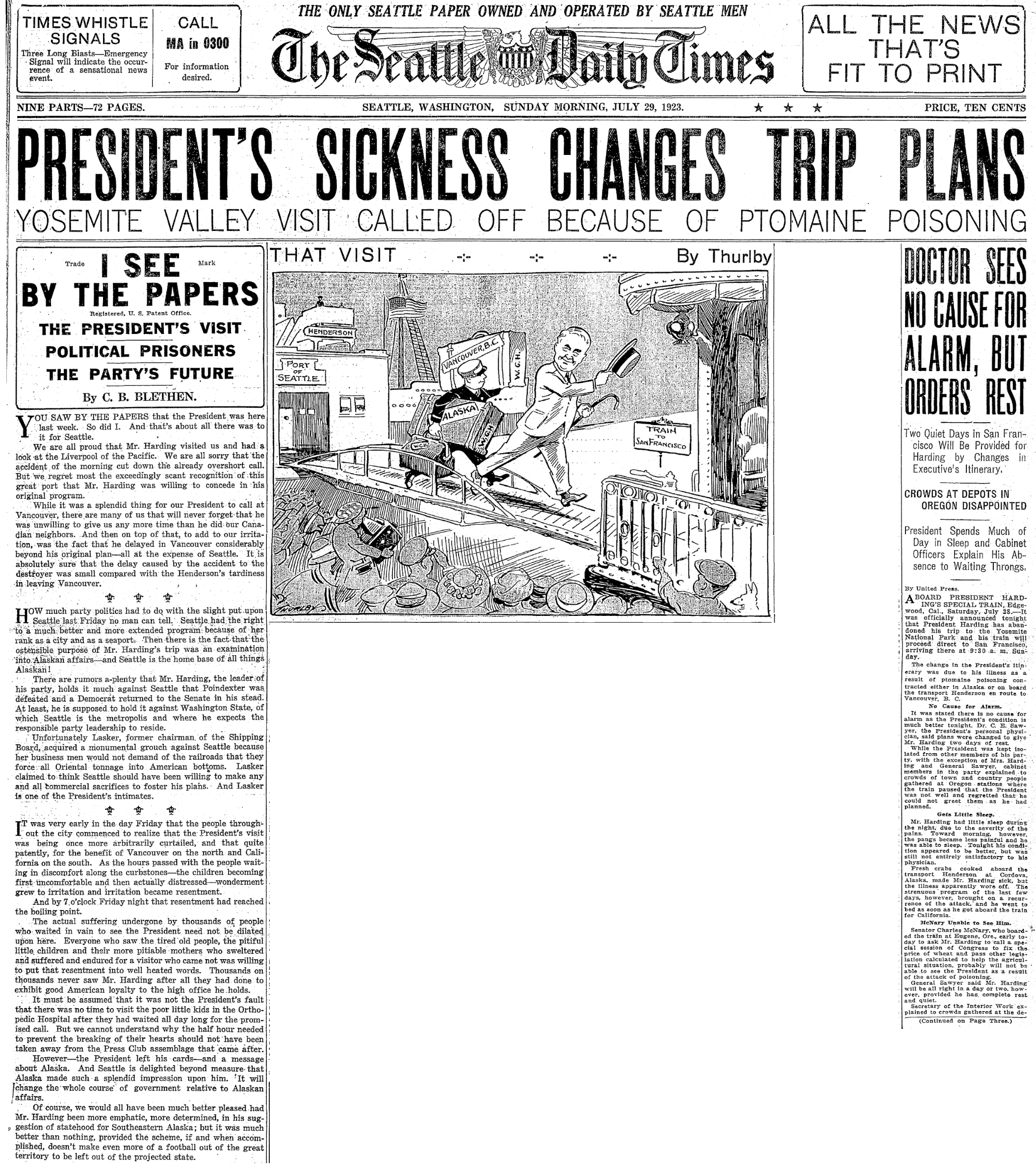 1923 07-29 STimes p1 July 12, 2023 2112 × 2386 Seattle Now & Then: Harding, big crowds at Woodland Park & UW, 1923 July 29, 1923, Seattle Times p1.