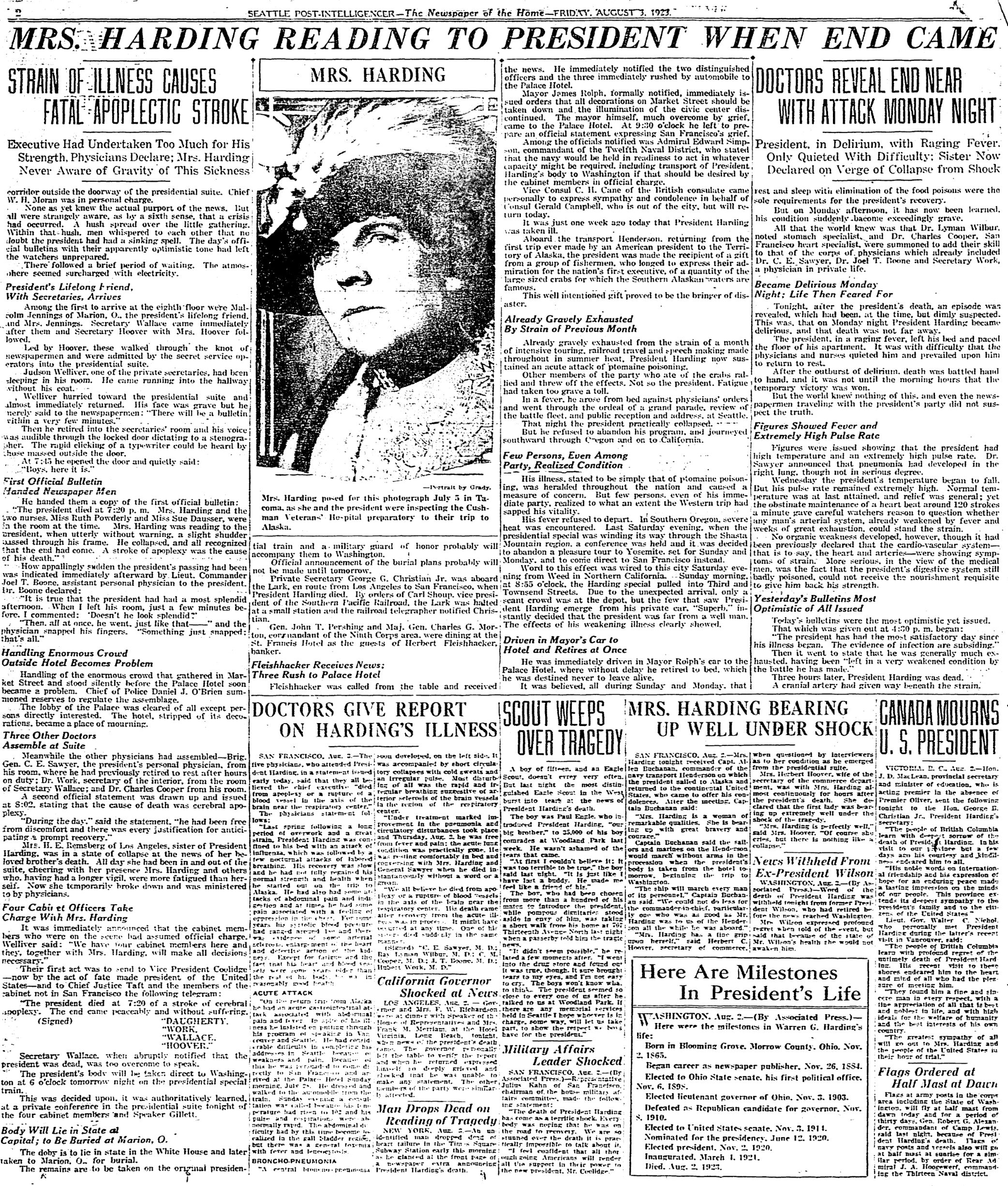 1923 08-03 SPI p2 July 12, 2023 2084 × 2452 Seattle Now & Then: Harding, big crowds at Woodland Park & UW, 1923 Aug. 3, 1923, Seattle Post-Intelligencer, p2.