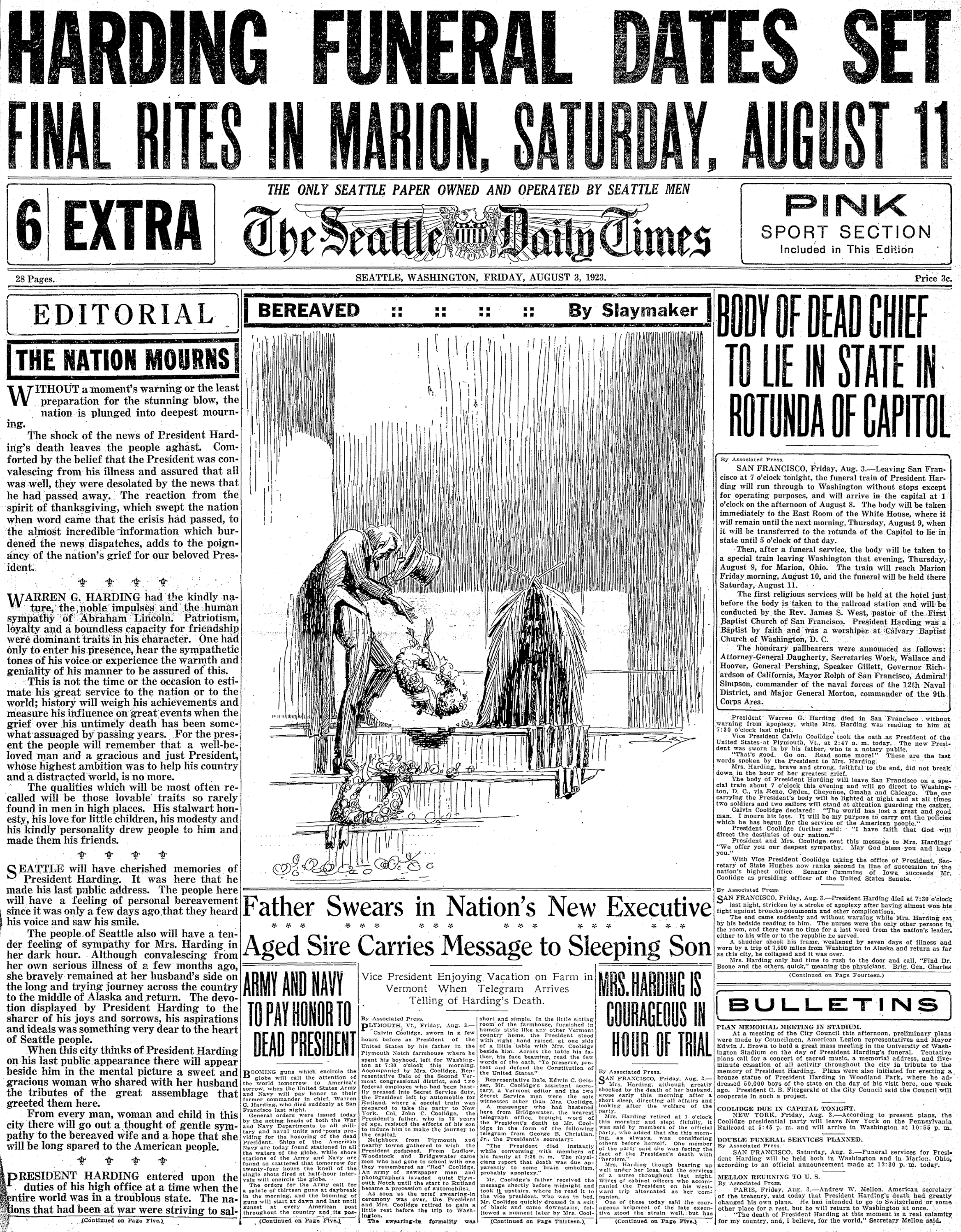 1923 08-03 STimes p1 July 12, 2023 2088 × 2676 Seattle Now & Then: Harding, big crowds at Woodland Park & UW, 1923 Aug. 3, 1923, Seattle Times, p1.