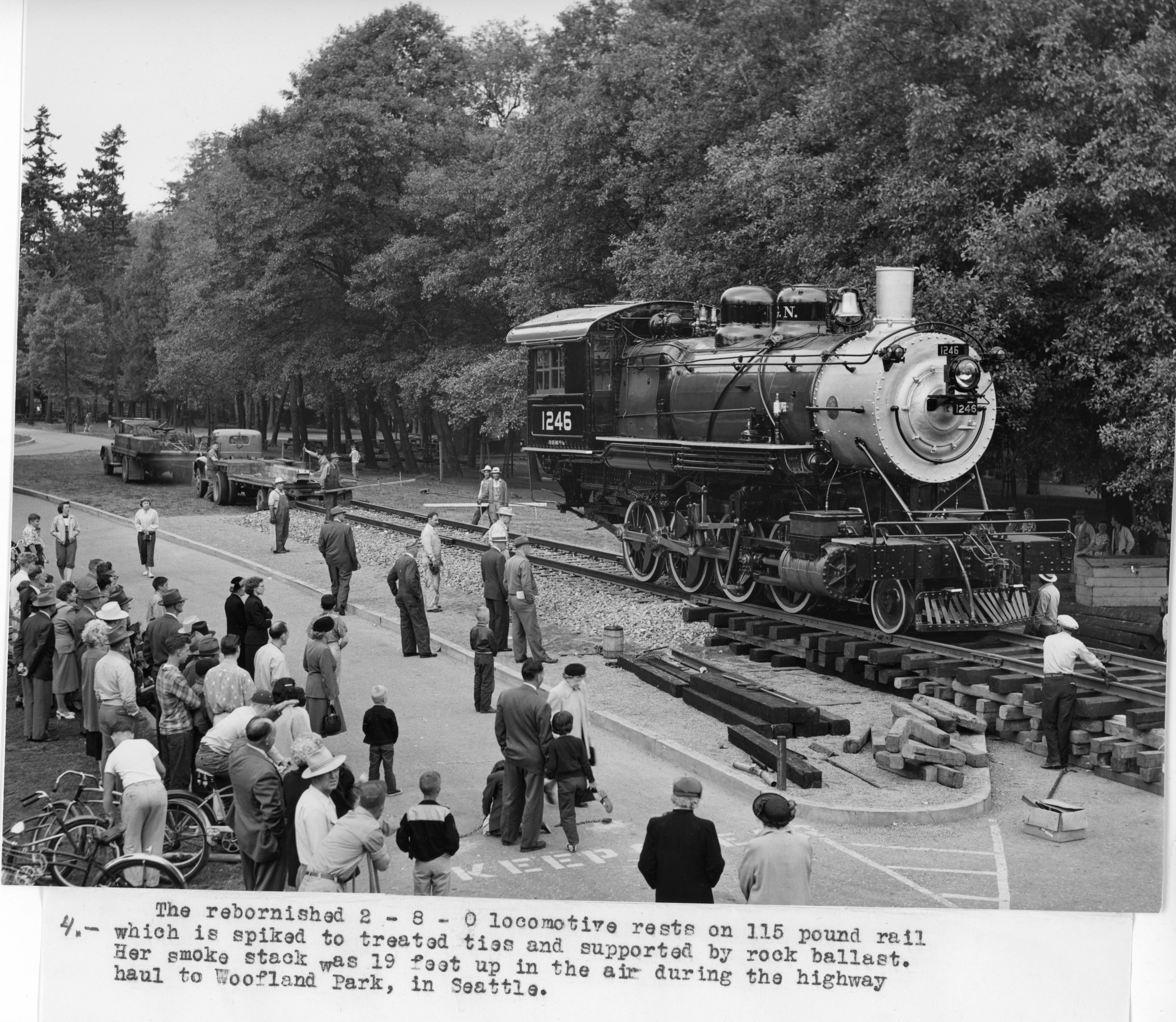 1246 ounloaded in Park002 July 25, 2023 5470 × 4752 Seattle Now & Then: Woodland Park Zoo Locomotive #1246, 1953 Locomotive #1246 in 1953, when it was moved to Woodland Park Zoo. (Great Northern Railway Historical Society)