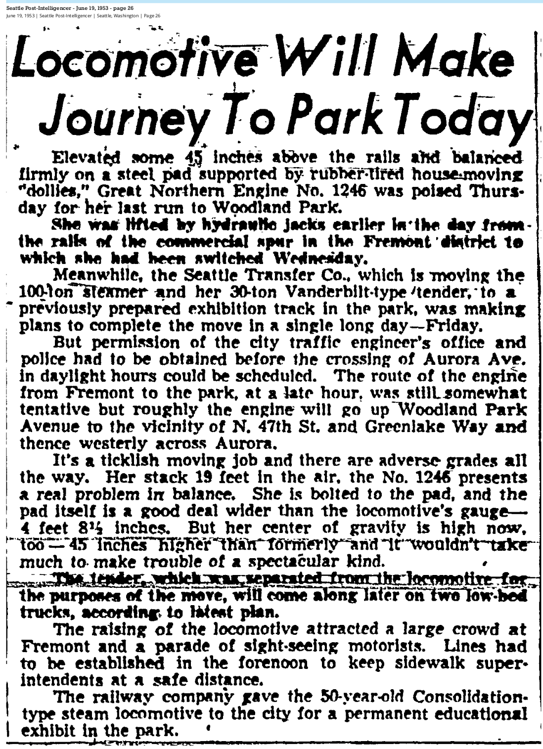 1953 06-19 SPI p26 July 25, 2023 1098 × 1515 Seattle Now & Then: Woodland Park Zoo Locomotive #1246, 1953 June 19, 1953, Seattle Post-Intelligencer, p26.