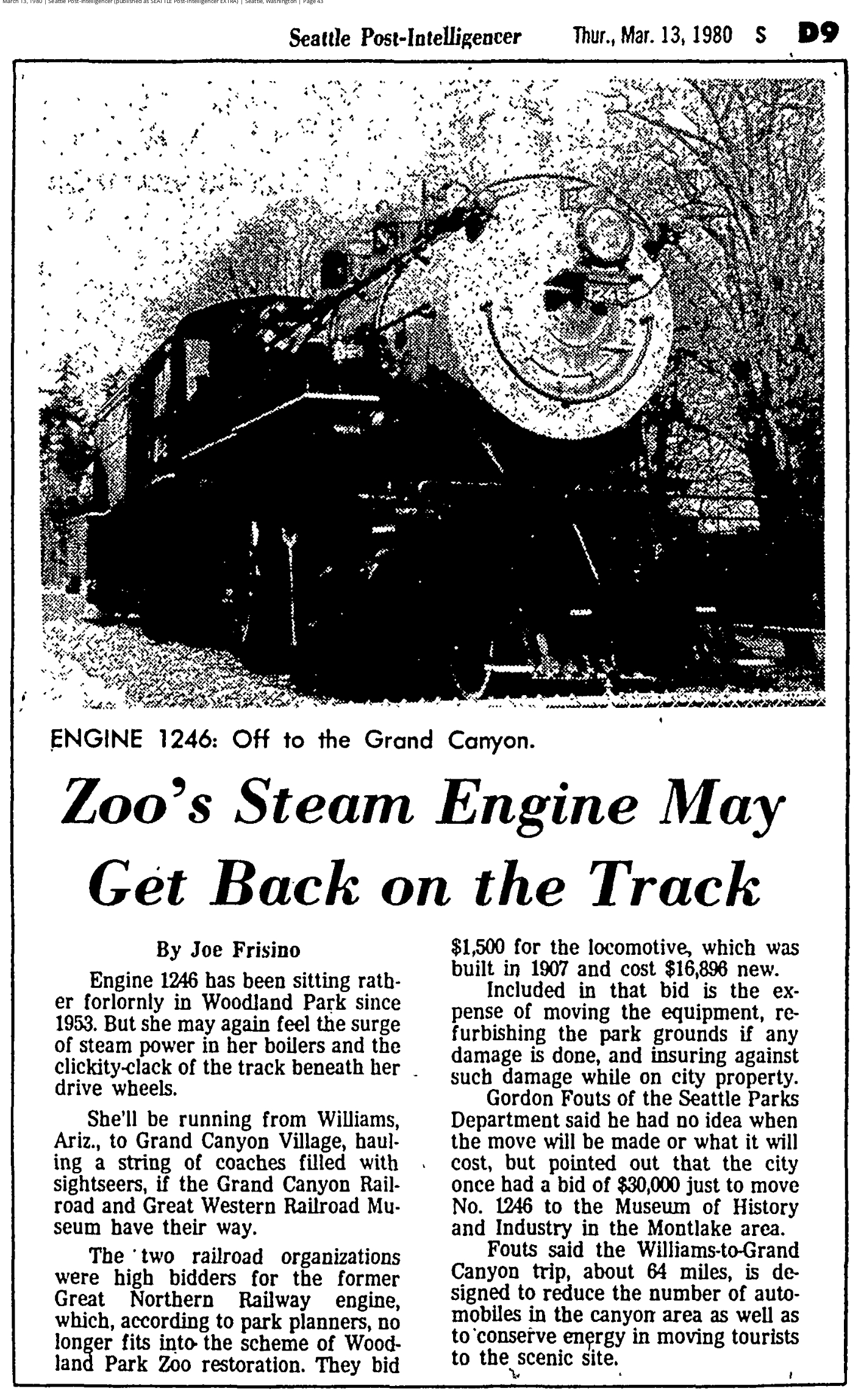 1980 03-13 SPI p43 July 25, 2023 1412 × 2296 Seattle Now & Then: Woodland Park Zoo Locomotive #1246, 1953 March 13, 1980, Seattle Post-Intelligencer, p43.
