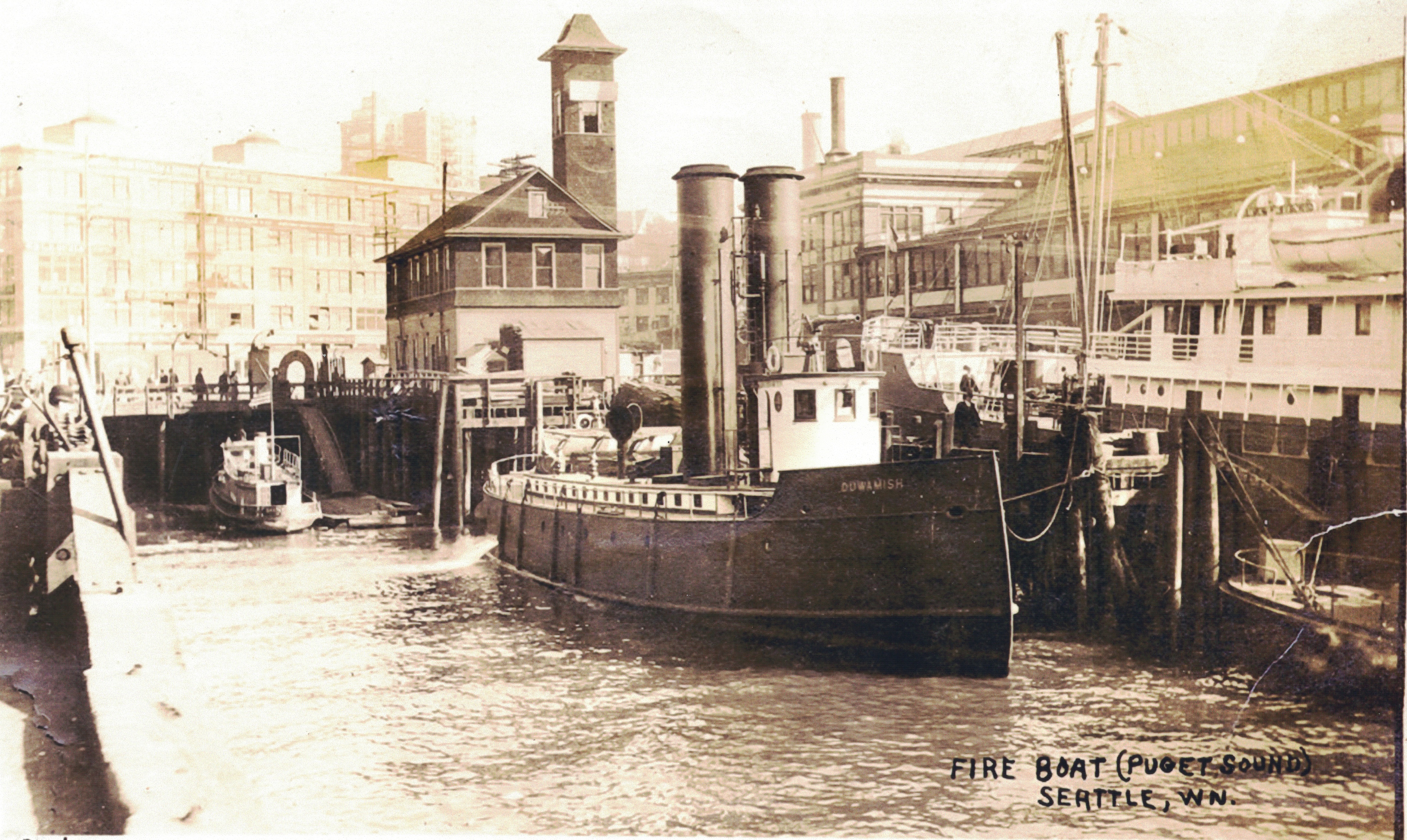 1912 03-17 Fireboat Duwamish station #5 Madison St source unknown August 2, 2023 5156 × 3079 Seattle Now & Then: the fireboat Duwamish 1910 March 17, 1912, fireboat Duwamish at station #5, Madison Street. (Courtesy Bob Carney)