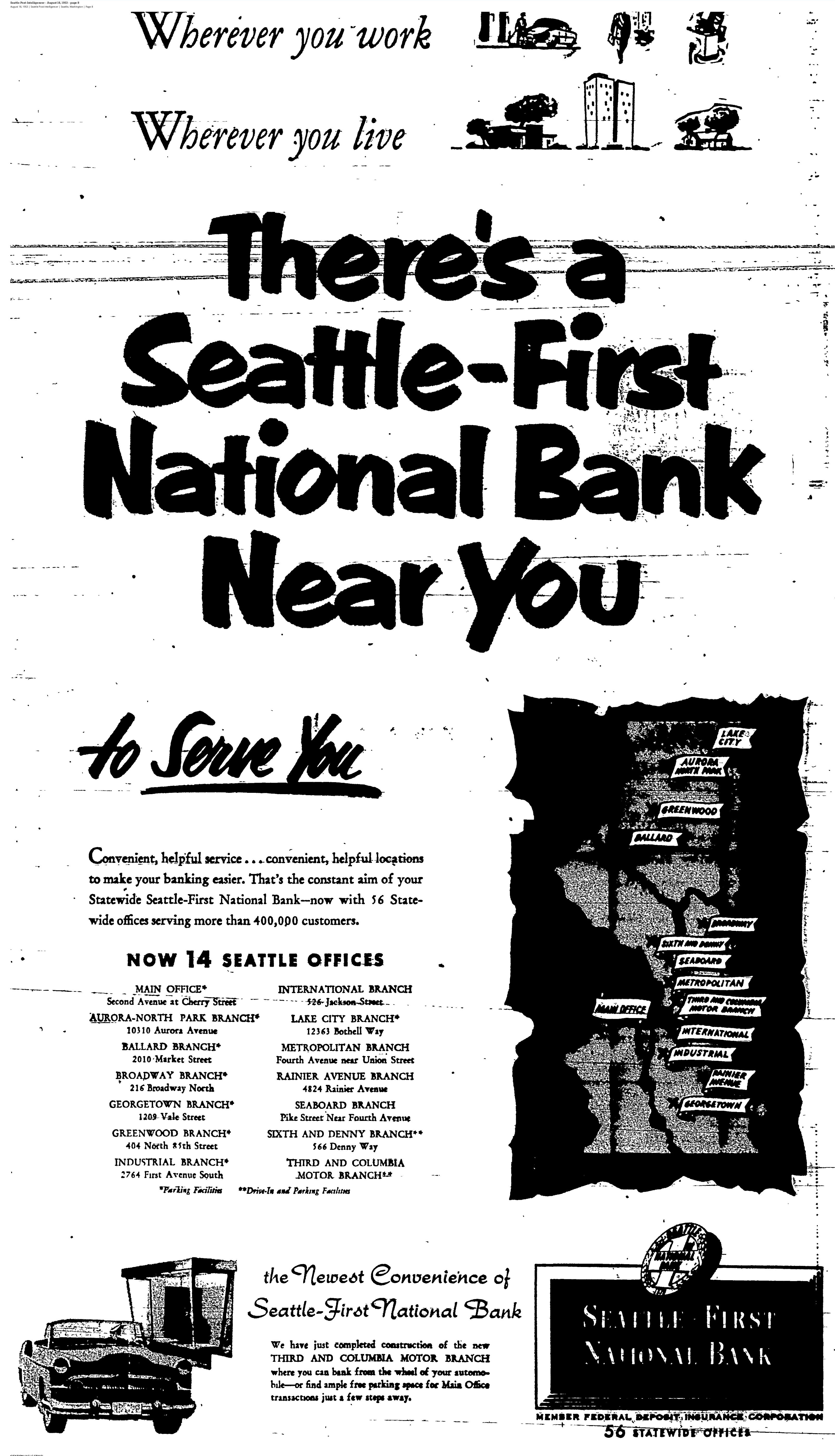 1953 08-18 SPI, p8 August 21, 2023 3208 × 5592 Seattle Now & Then: Landmarked bank on Denny Way, 1950 Aug. 18, 1953, Seattle Post-Intelligencer, p8.