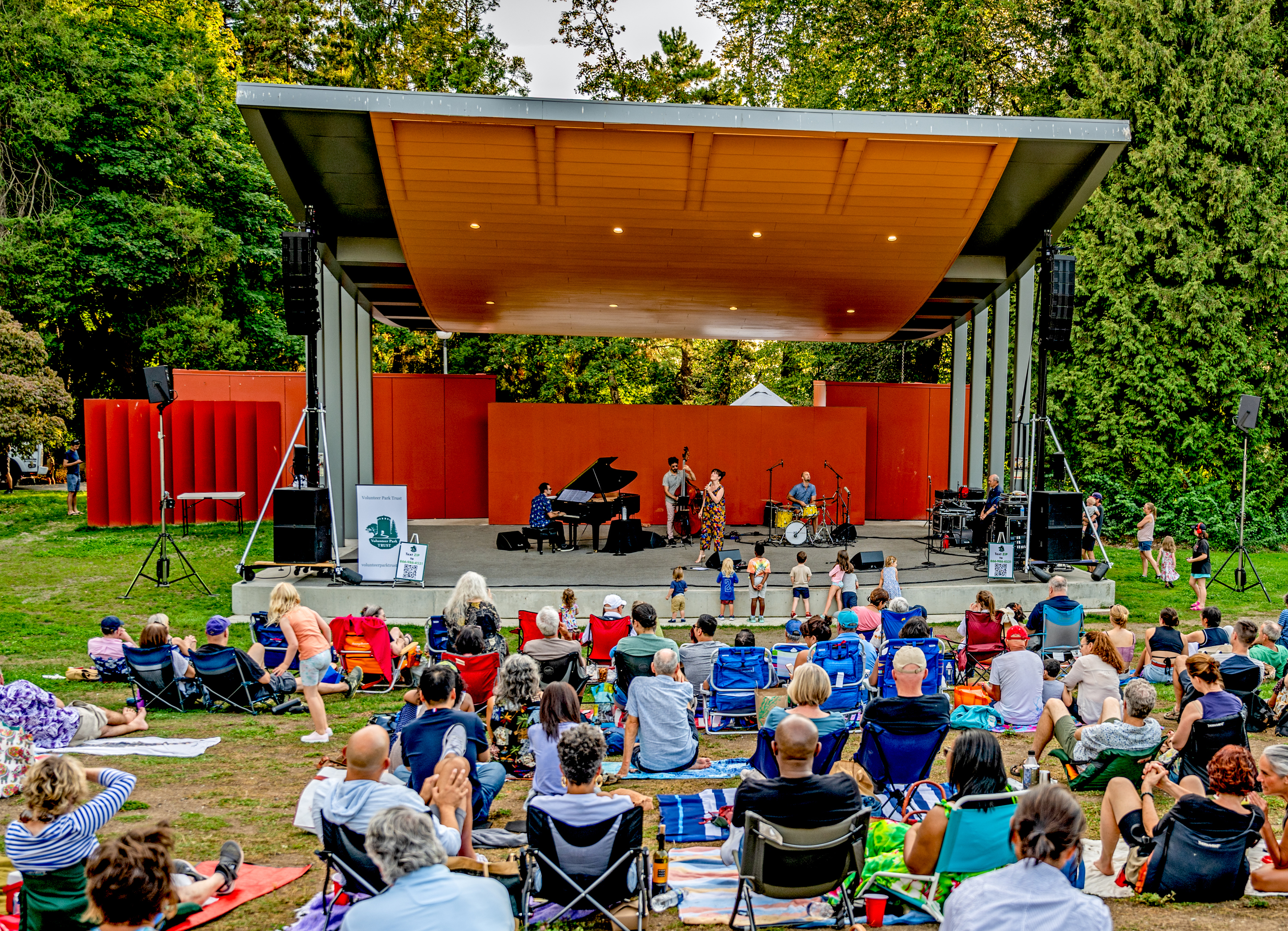 NOW1: Vocalist Sara Gazarek entertains a laid-back crowd of jazz fans on Aug. 17, 2023. On Sept. 21, Owen Richards Architects received a 2023 Civic Design Award from the Washington Council of the American Institute of Architects for the amphitheater.