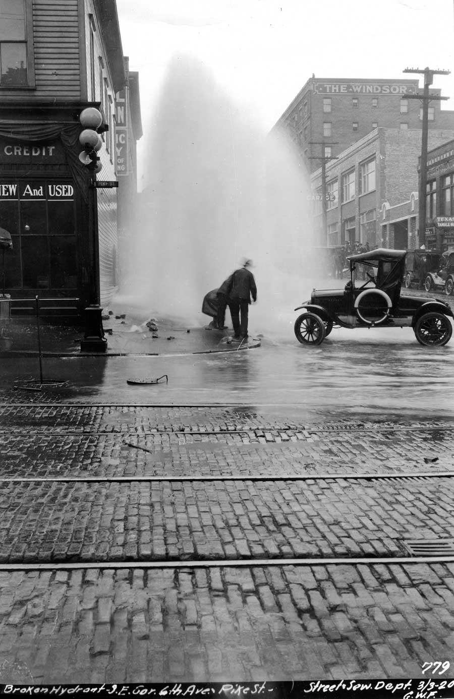 3. 6th-&-Pike-broken-hydrant-3-3-20WEB November 17, 2013 900 × 1386 3. 6th-&-Pike-broken-hydrant-3-3-20WEB Earlier and a block east on Pike St. a hydrant is broken on the southeast corner of Pike and Sixth on March 3, 1920.
