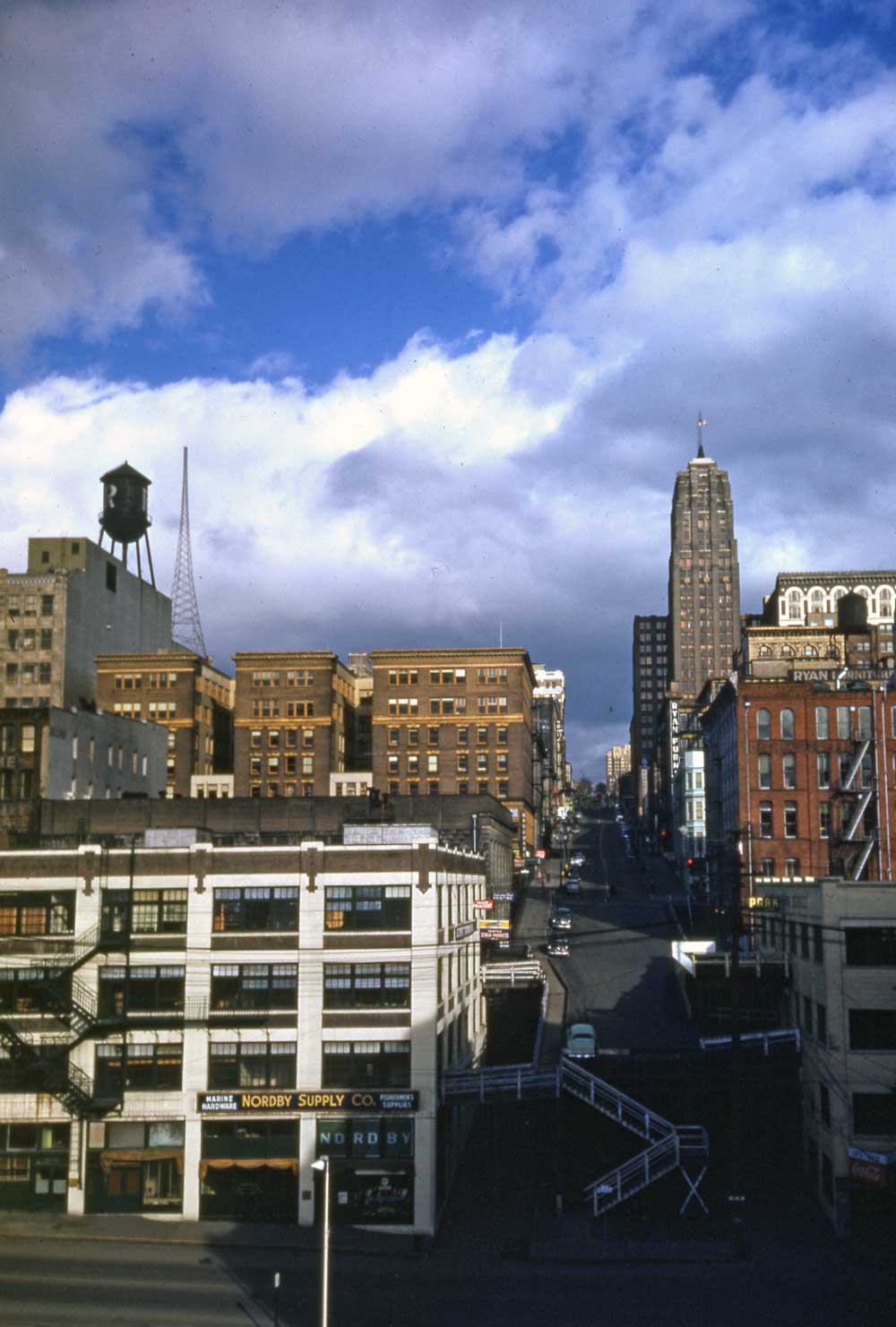 4.–University-st-1953-f-Alaska-viaductWEB May 6, 2012 1000 × 1481 4.–University-st-1953-f-Alaska-viaductWEB East on University Street from the Alaskan Way viaduct before it was opened to traffic in 1953. Photo by Horace Sykes.