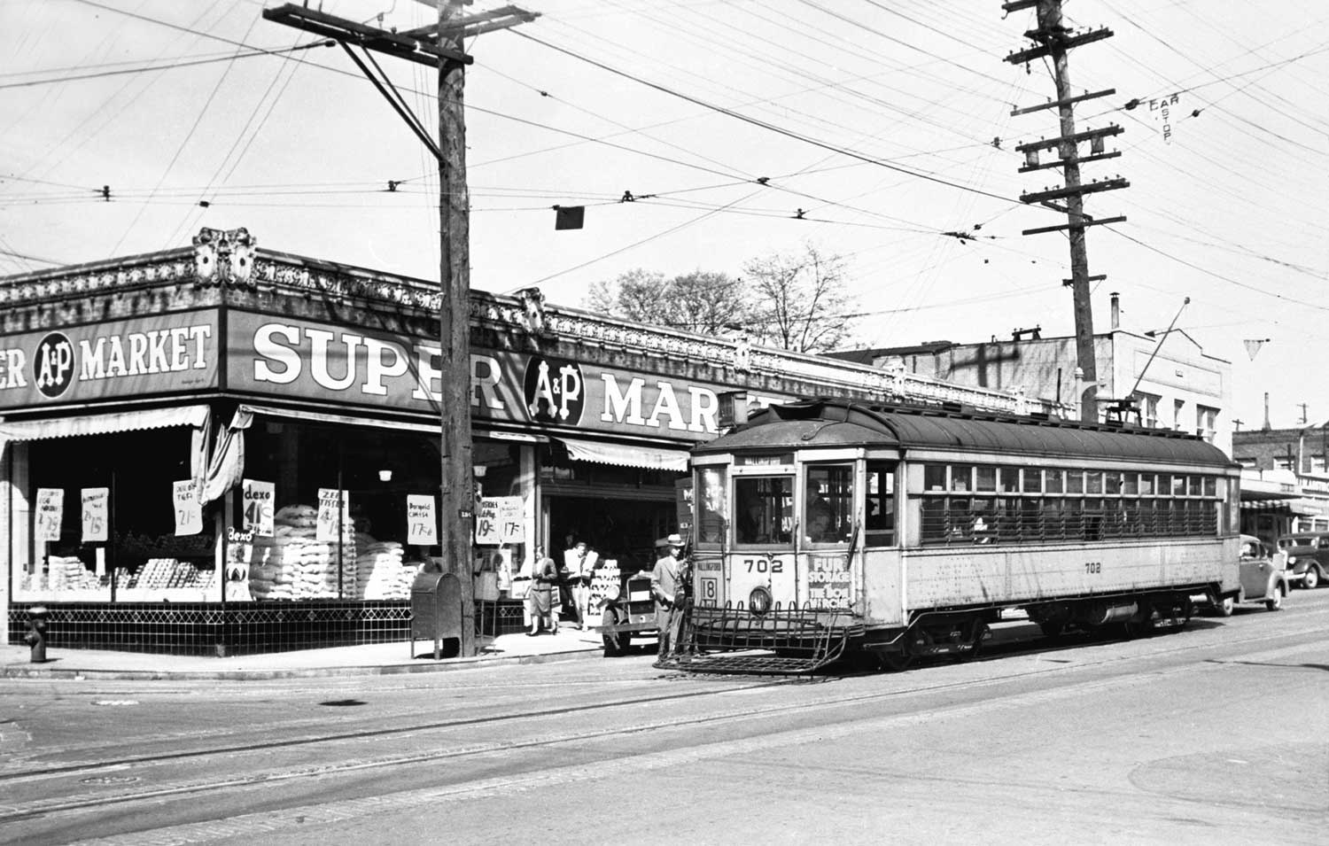 45—Meridian-w-Trolley-THEN-mr October 8, 2011 1500 × 955 45—Meridian-w-Trolley-THEN-mr THEN: Looking thru the main business intersection of what once called the Wallingford Hill District, but now is simply Wallingford. Trolley 702 looks west on 45th Street and across Meridian Street. (Courtesy Lawton Gowey)