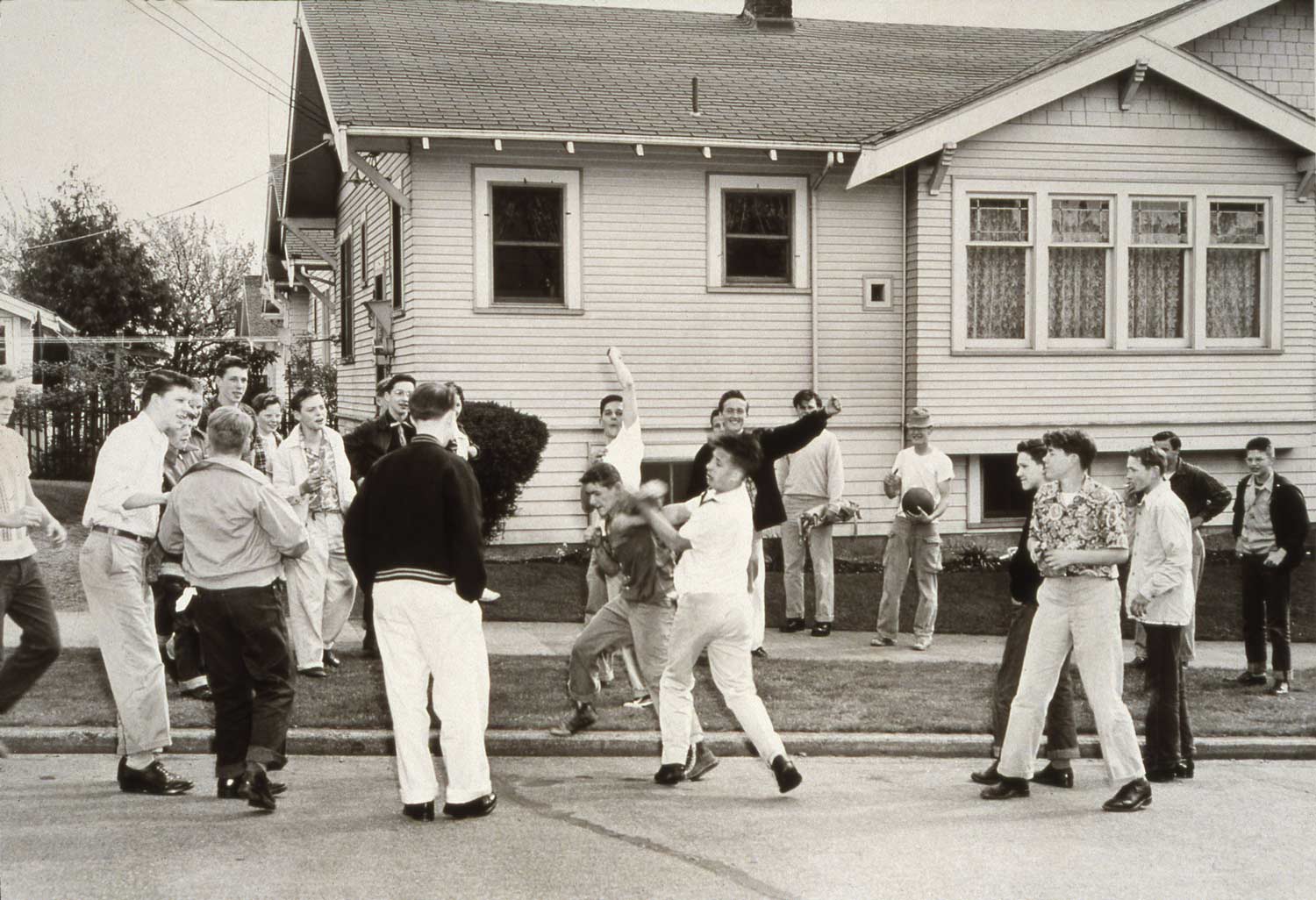 THEN: Stan Stapp, publisher of the North Central Outlook, recorded this fistfight in the spring of 1952. In this instance the story came to him. The fists were thrown for the half-witted amusement of other boys soon after Lincoln High recessed for the day. The scene is on North 42nd Street just east of Ashworth Avenue North.