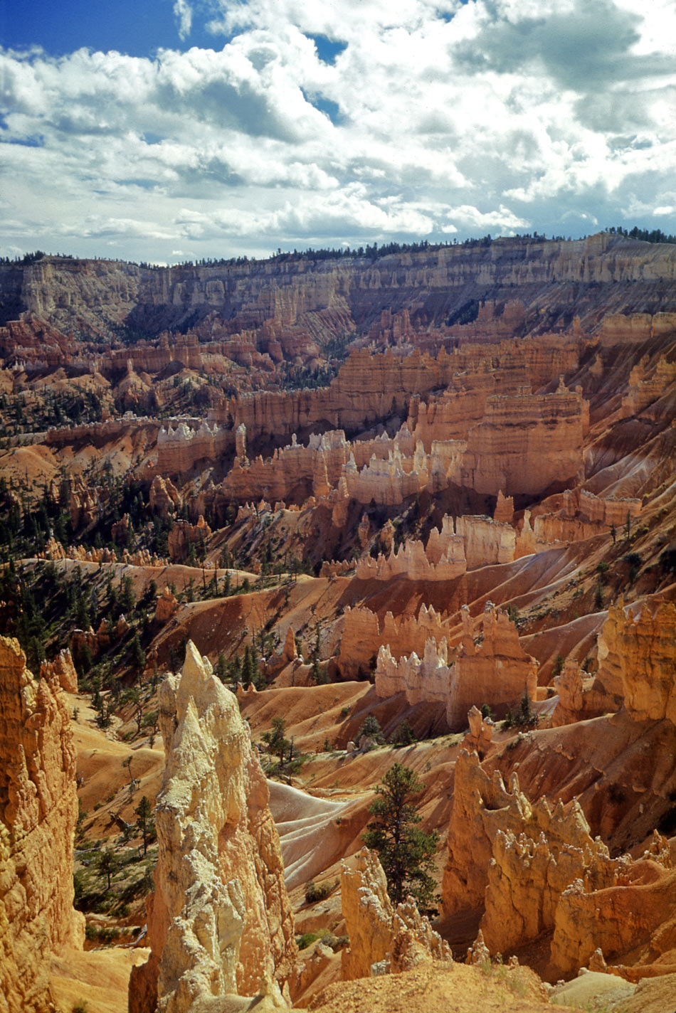 This blog has visited this prospect – nearly – before. There are differences between the earlier record from Sunright Point and this one, but they are clearly the same place. The first showing was as Our Daily Sykes #18, last year on April 30. Both exploit the warm inclinations of the Kodachrome emulsion to make Bryce Canyon’s hoodoos appear like transluscent class art.