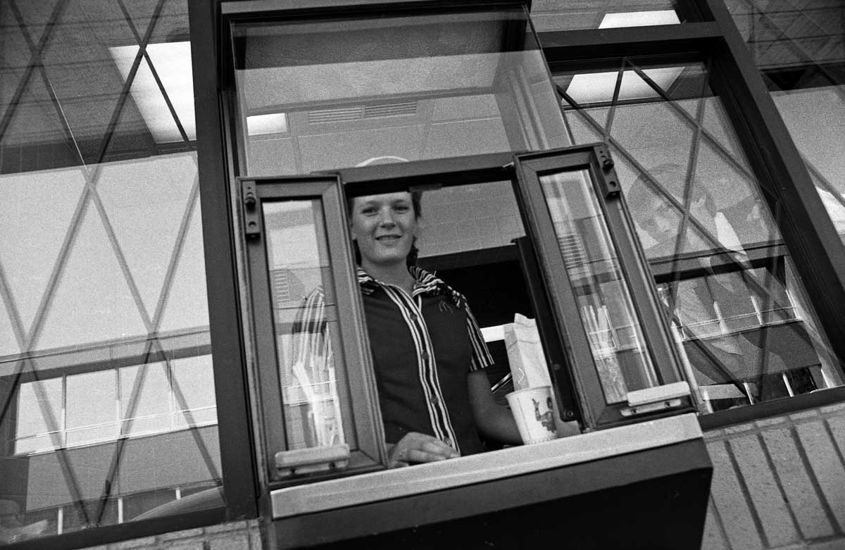 Fast-Food-Server-1980s-WEB August 24, 2013 1200 × 781 Fast-Food-Server-1980s-WEB Golden Arches on Rainier ca. 1985 with cheerful attendant and watchful figure in the window. (I ordered a cherry pie)