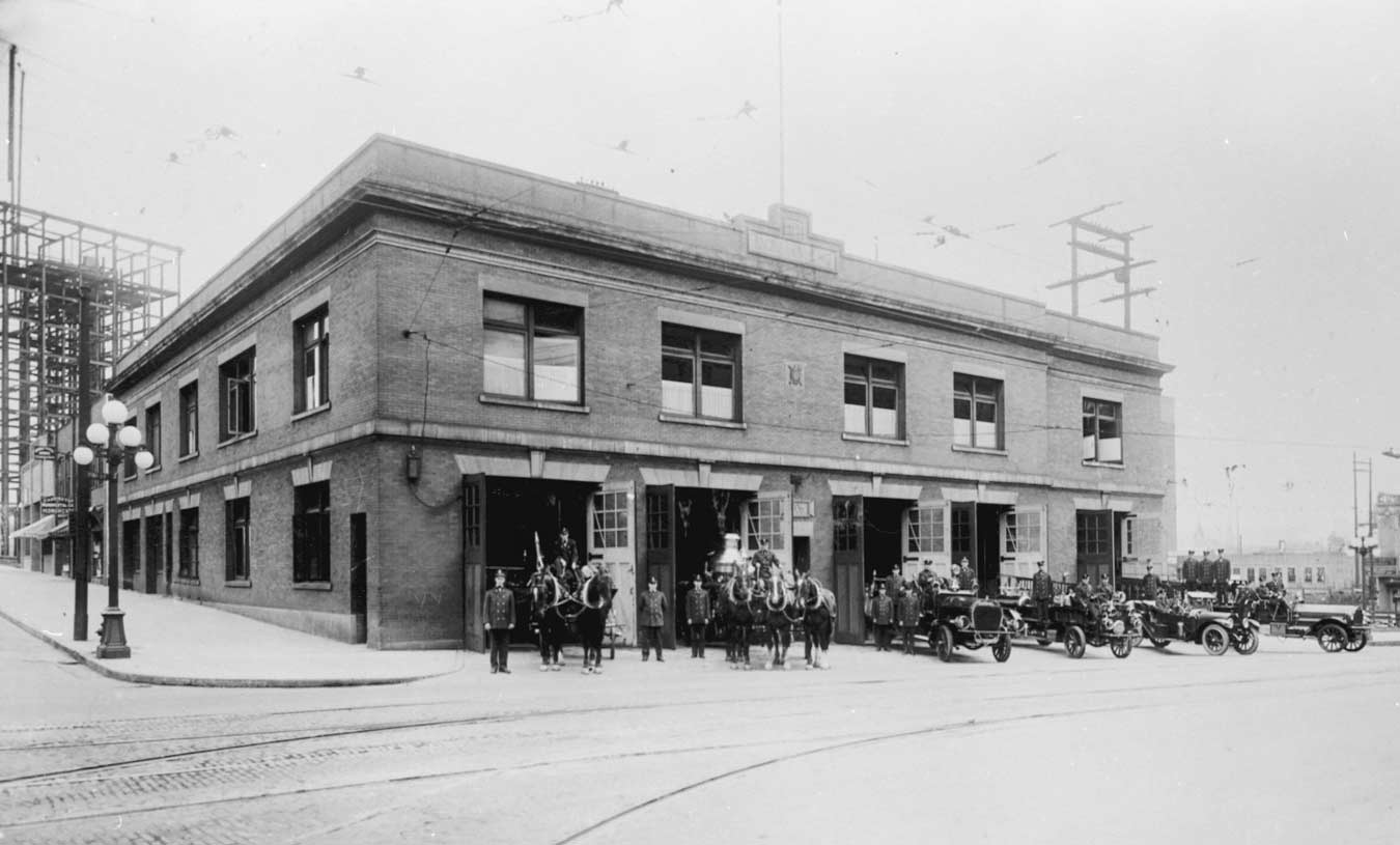 Fire-St-New-Horses-WEB July 31, 2011 1350 × 815 Fire-St-New-Horses-WEB The new #2 with its teams posing at open doors. The New Washington Hotel is under construction at the northeast corner of Stewart and 3rd, far left.