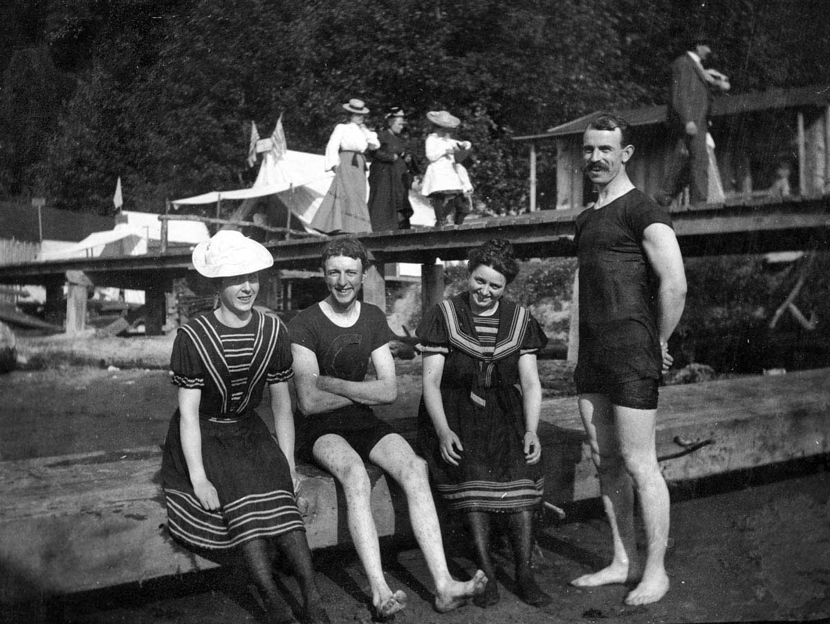 INTRO-Swim-quartet1-WEB July 17, 2011 1200 × 903 INTRO-Swim-quartet1-WEB A smaller trestle for pedestrians was constructed between the tides and the beach community of tents and otherwise sheltered campers and purveyors.