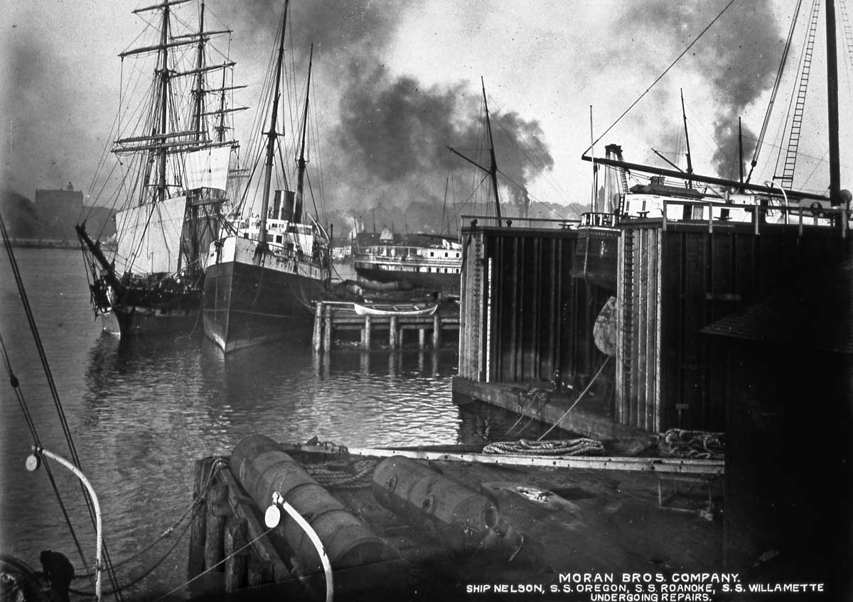 Moran-dry-dock-&-waterfront-Hal-WillsWEB September 15, 2013 1200 × 848 Moran-dry-dock-&-waterfront-Hal-WillsWEB Looking north along the outer water edge of the Moran shipyard, ca. 1903. The Denny aka Washington Hotel on the summit of Denny Hill holds the horizon, far right. Again, courtesy of Hal Will.