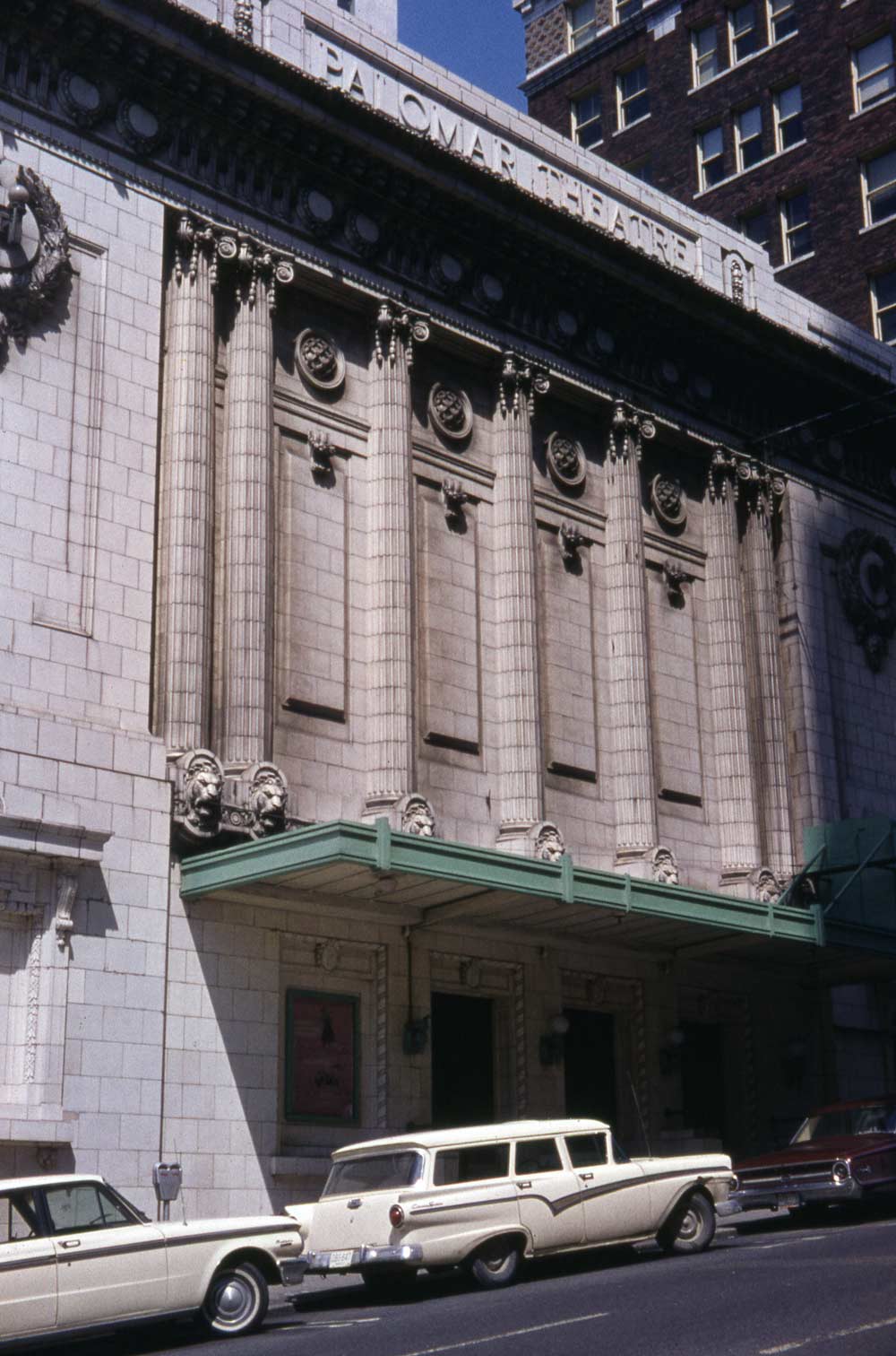 In between his two views, above, of the church, Lawton also photographed the University Street façade of the Palomar on May 5, 1965 moments before it too was razed. Lawton’s photographs of the razing will be found and printed here – when they are found