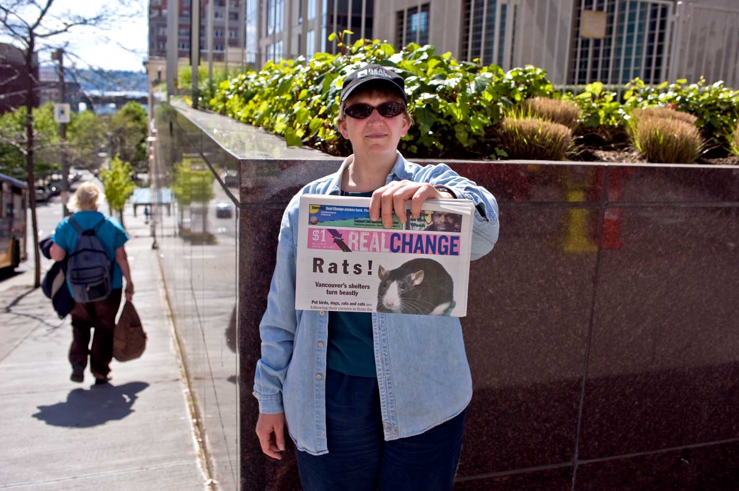 real-change-now June 21, 2009 1500 × 998 real-change-now NOW: Appropriately, for the contemporary repeat Jean Sherrard recorded Cassie Phillips, a Real Change newspaper salesperson, showing her fare at the same corner.