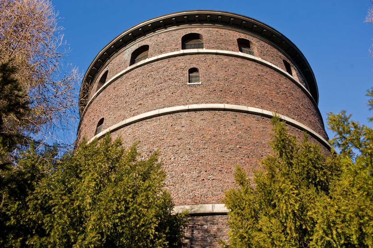 Oakes scaled the standpipe to its observatory by the protected stairway that winds between the tower’s steel tank and its clinker brick skin, as did Jean Sherrard for his repeat 101 years later.